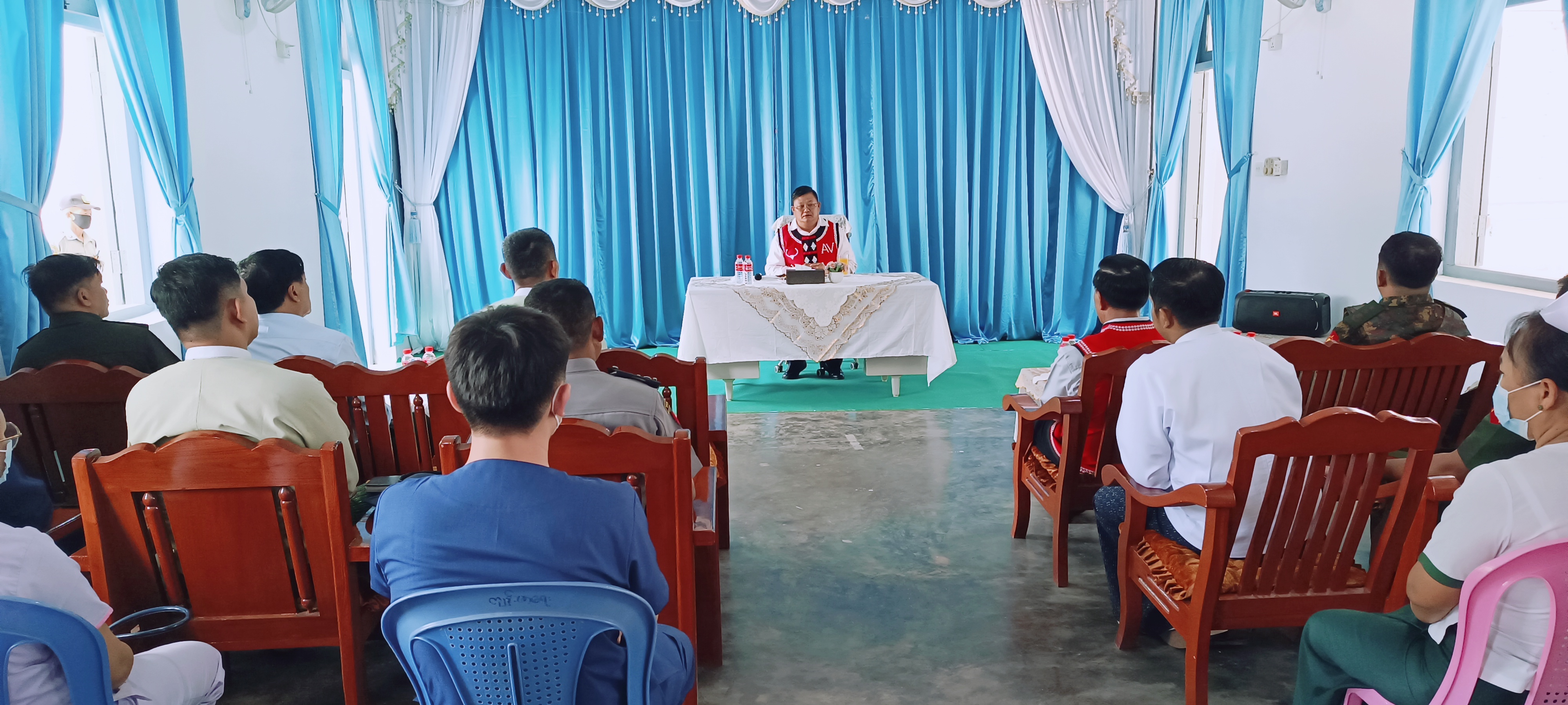 နိုင်ငံတော်စီမံအုပ်ချုပ်ရေးကောင်စီအဖွဲ့ဝင် ဦးရန်ကျော်သည် ယနေ့နံနက် ၉ နာရီတွင် “ဝ”ကိုယ်ပိုင်အုပ်ချုပ်ခွင့်ရတိုင်း ဟိုပန်မြို့ရှိ ဝဏ္ဏကျော်ထင်စဝ်ခွန်ဆမ်ခန်းမတွင် ကျင်းပသည့် ခရိုင် နှင့်မြို့နယ်အဆင့်ဌာနဆိုင်ရာများ၊ ဒေသပြည်သူများနှင့် တွေ့ဆုံပွဲအခမ်းအနားသို့ တက်ရောက်သည်။