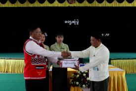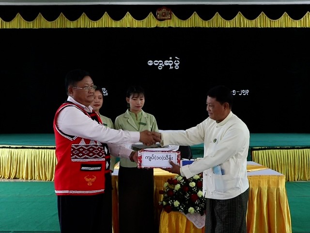 ယင်းနောက် နိုင်ငံတော်စီမံအုပ်ချုပ်ရေးကောင်စီအဖွဲ့ဝင် ဦးရန်ကျော်က ပညာရေးကဏ္ဍအတွက် ထောက်ပံ့ငွေ(၁၀)သိန်းကျပ်ကို မြို့နယ်ပညာရေမှူးထံပေးအပ်ပြီး နိဂုံးချုပ်စကား ပြောကြားကာ အခမ်းအနားသို့ တက်ရောက်လာသူများကို ရင်းရင်းနှီးနှီး လိုက်လံနှုတ်ဆက်သည်။