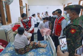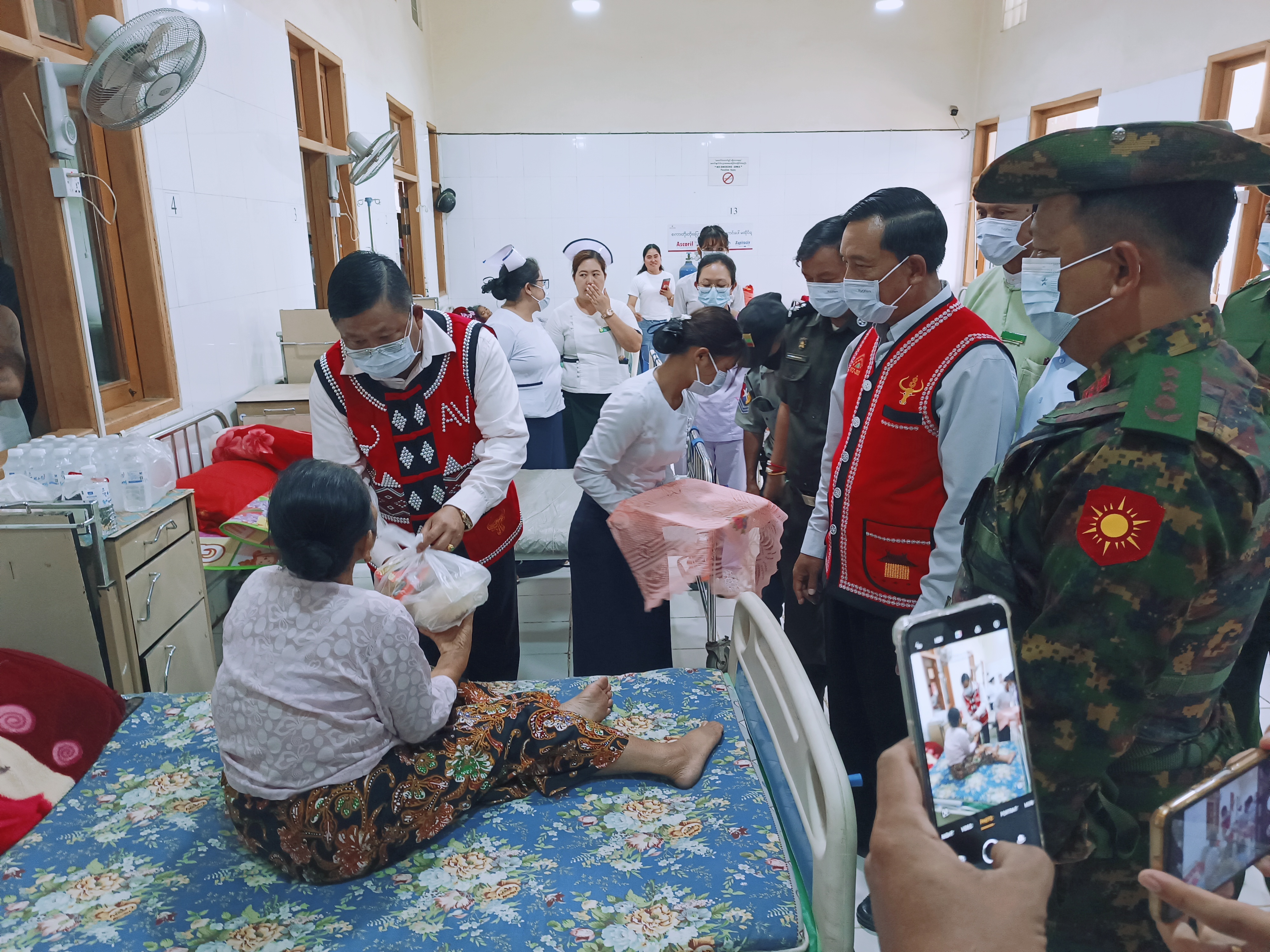 ထို့နောက် နိုင်ငံတော်စီမံအုပ်ချုပ်ရေးကောင်စီအဖွဲ့ဝင် ဦးရန်ကျော်သည် ဟိုပန်မြို့ပြည်သူ့ ဆေးရုံသို့ရောက်ရှိပြီး အောက်ဆီဂျင်စက်ရုံနှင့် isolation ward ဆောက်လုပ်မည့်နေရာတို့ကို ကြည့်ရှုစစ်ဆေးကာ ဆေးရုံတက်ရောက်ကုသနေသည့် လူနာများကို ထောက်ပံ့ပစ္စည်းများ ပေးအပ်၍ ပြည်သူ့ဆေးရုံအစည်းအဝေးခန်းမတွင် ကျန်းမာရေးဦးစီးဌာနမှ ဝန်ထမ်းများနှင့်တွေ့ဆုံကာ ဝန်ထမ်းများ၏ တင်ပြချက်များအပေါ် ညှိနှိုင်းပေါင်းစပ်ပေးခဲ့ကြောင်း သိရသည်။