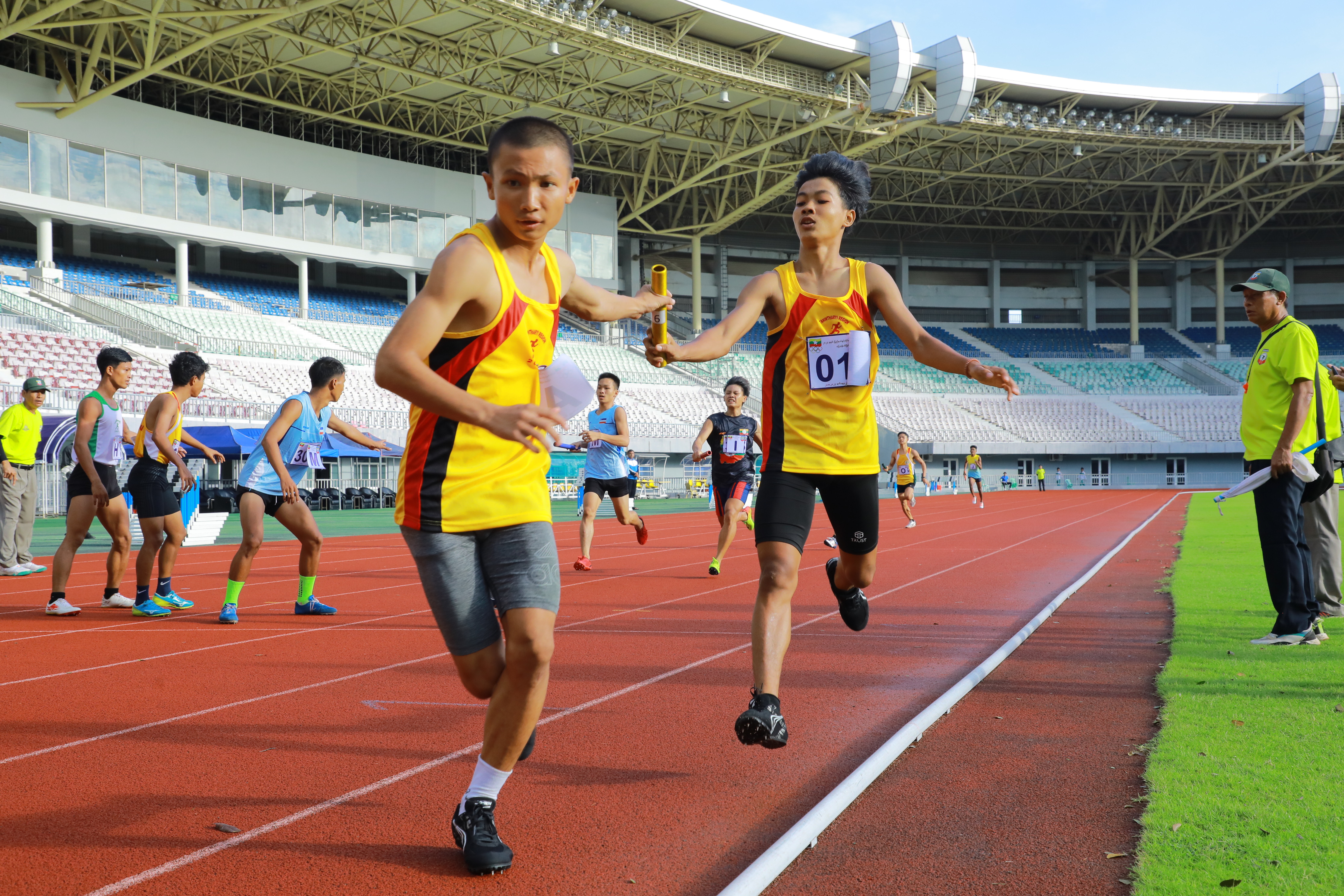 ဦးစွာ နိုင်ငံတော်စီမံအုပ်ချုပ်ရေးကောင်စီ အဖွဲ့ဝင်များသည် အခမ်းအနားသို့ တက်ရောက်လာကြသူများနှင့်အတူ ၂၀၂၄ ခုနှစ်၊ ပြည်နယ်နှင့် တိုင်းဒေသကြီး အသက် (၁၈) နှစ်အောက် ပြေးခုန်ပစ်ပြိုင်ပွဲ ဗိုလ်လုပွဲပွဲစဉ်များအဖြစ် (အမျိုးသား/အမျိုးသမီး) မီတာ ၁၀၀ အပြေးပြိုင်ပွဲနှင့် အမျိုးသား မီတာ ၂၀၀၀ တားဆီးကျော် ပြေးပြိုင်ပွဲတို့ကို ကြည့်ရှုအားပေးရာ အမျိုးသမီး မီတာ ၁၀၀ အပြေး ပြိုင်ပွဲတွင် သီရိလင်းလင်း (စစ်ကိုင်း) က ၁၃ ဒသမ ၃၄ စက္ကန့်ဖြင့် ပထမ၊ အေးစန္ဒာဝင်း (မကွေး) က ၁၃ ဒသမ ၄၇ စက္ကန့်ဖြင့် ဒုတိယ၊ ရွှေခရေဦး (ကရင်) က ၁၃ ဒသမ ၄၉ စက္ကန့်ဖြင့် တတိယ၊ အမျိုးသား မီတာ ၁၀၀ အပြေးပြိုင်ပွဲတွင် စောလဲပွဲခူ (ဧရာဝတီ) က ၁၁ ဒသမ ၂၄ စက္ကန့်ဖြင့် ပထမ၊ အောင်မျိုးဇော် (ပဲခူး) က ၁၁ ဒသမ ၂၆ စက္ကန့်ဖြင့် ဒုတိယ၊ ဇေယျာဖြိုး (စစ်ကိုင်း) က ၁၁ ဒသမ ၂၈ စက္ကန့်ဖြင့် တတိယ၊ အမျိုးသား မီတာ ၂၀၀၀ တားဆီးကျော် ပြေးပြိုင်ပွဲတွင် ကျော်ဇင်ထွန်း (စစ်ကိုင်း) က ၆ မိနစ် ၄၄ ဒသမ ၉၆ စက္ကန့်ဖြင့် ပထမ၊ အောင်မြင့်မြတ် (ရှမ်း) က ၆ မိနစ် ၄၆ ဒသမ ၅၁ စက္ကန့်ဖြင့် ဒုတိယ၊ ဟိန်းသူရအောင် (တနင်္သာရီ) က ၆ မိနစ် ၅၄ ဒသမ ၅၄ စက္ကန့်ဖြင့် တတိယတို့ အသီးသီးရရှိခဲ့သည်။