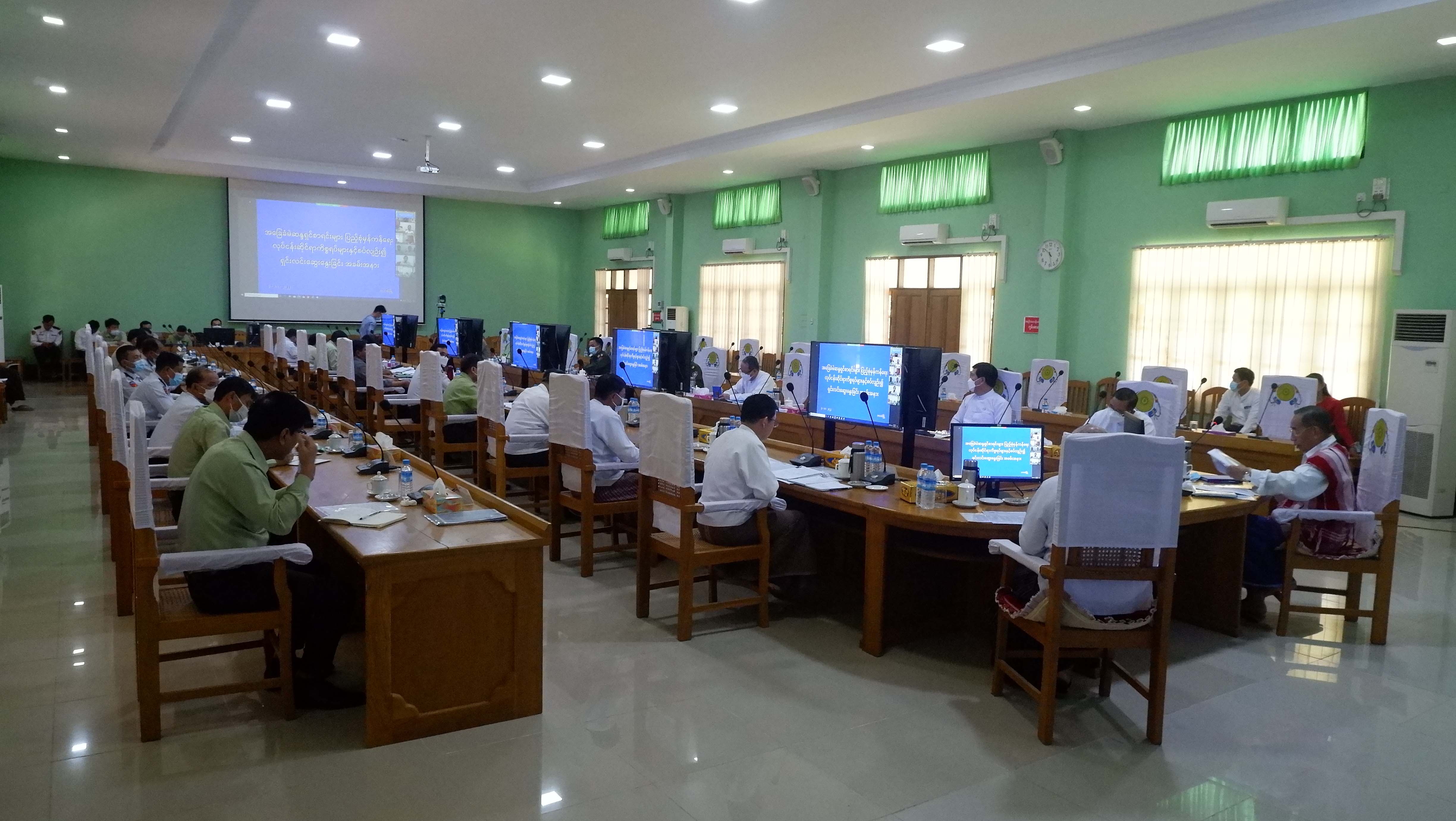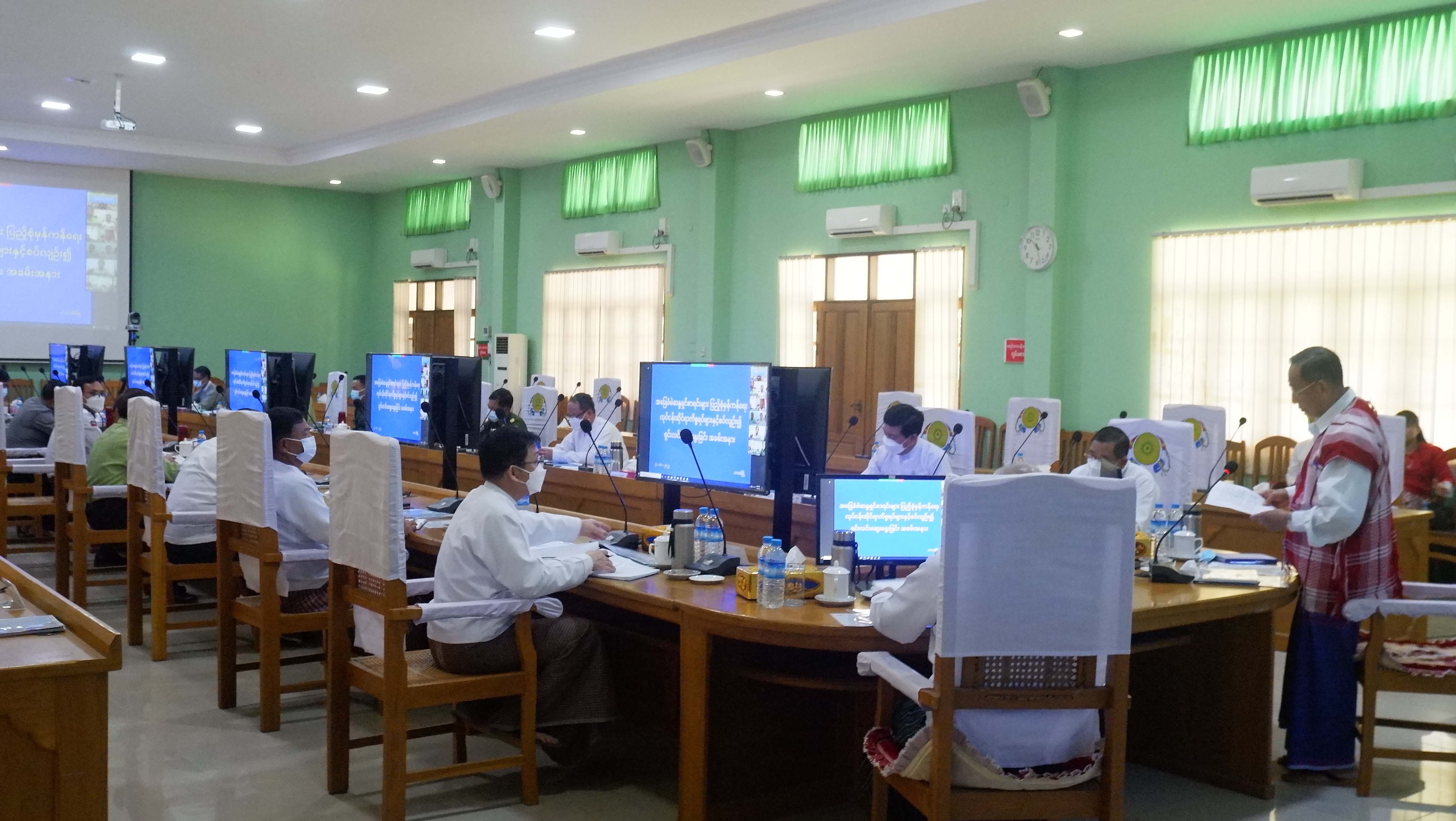 ထို့နောက် လူဝင်မှုကြီးကြပ်ရေးနှင့် ပြည်သူ့အင်အားဝန်ကြီးဌာန ပြည်ထောင်စုဝန်ကြီး ဦးမြင့်ကြိုင်က ယခုနိုင်ငံ တော်အစိုးရတာဝန်ယူစဉ်ကာလအတွင်း မဲပေးပိုင်ခွင့်ရှိသူ နိုင်ငံသားတိုင်း ကိုင်ဆောင်ကတ်ပြားတစ်မျိုးမျိုး ကိုင်ဆောင်မဲပေးနိုင်ရေးအတွက် နိုင်ငံတစ်ဝန်း ပန်းခင်းစီမံချက်ဖြင့် နိုင်ငံသားကတ်ပြားထုတ်ပေးနေမှုနှင့် နိုင်ငံသားကတ်ပြား မပြုလုပ်ရသေးသူမရှိစေရေးအတွက် ကောက်သင်းကောက် ဆောင်ရွက်ပေးနေမှု၊ မြေပြင် လူဦးရေစာရင်း တိုက်ဆိုင်စစ်ဆေးဆောင်ရွက်နေမှု၊ နိုင်ငံသားကတ်ထုတ်ပေးခြင်း မှတ်ပုံတင် စာအုပ်(နိုင်-၄)နှင့် အိမ်ထောင်စုလူဦးရေစာရင်းပါ အချက်အလက်များအား နည်းပညာ အသုံးပြု၍ ရုံးသုံး Server တွင် တစ်နေရာတည်း၌ စုစည်းထားရှိမှုနှင့် ပြင်ဆင်/ ပယ်ဖျက်/ အတည်ပြုနိုင်ရန် မိဘပြည်သူများသို့ အသိပေးထုတ်ပြန်ချက်အား နိုင်ငံပိုင် မီဒီယာများမှ ထုတ်လွှင့်ဖော်ပြနေမှု၊ လက်ရှိစာရင်းနှင့် မြေပြင်စာရင်း တိုက်ဆိုင်စစ်ဆေးကာ မှန်ကန်သောမဲစာရင်းများ ပြုစုနိုင် ရေးအတွက် ဆက်လက်ဆောင် ရွက်သွားမည့်အစီအစဉ်၊ ယင်းလုပ်ငန်းစဉ်သည် နိုင်ငံတော် အတွက် မဖြစ်မနေဆောင်ရွက်ရမည့်လုပ်ငန်းစဉ်ဖြစ်ပြီး သက်ဆိုင်ရာဌာနအသီးသီးမှ ဝိုင်းဝန်းကြိုးပမ်းဆောင်ရွက်နိုင်ရေးအခြေအနေ အစရှိသည့် အခြေခံမဲဆန္ဒရှင်စာရင်း မှန်ကန်ရေးဆိုင်ရာ ကိစ္စရပ်များနှင့် စပ်လျဉ်း၍ ရှင်းလင်းဆွေးနွေးခဲ့ပြီး ပြည်နယ်ဝန်ကြီးချုပ် ဦးစောမြင့်ဦးက ပြည်နယ်အတွင်း အခြေခံမဲဆန္ဒရှင်စာရင်း မှန်ကန်ရေးလုပ်ငန်းများ ဆောင်ရွက်ထားရှိမှုကို ရှင်းလင်းဆွေးနွေးသည်။