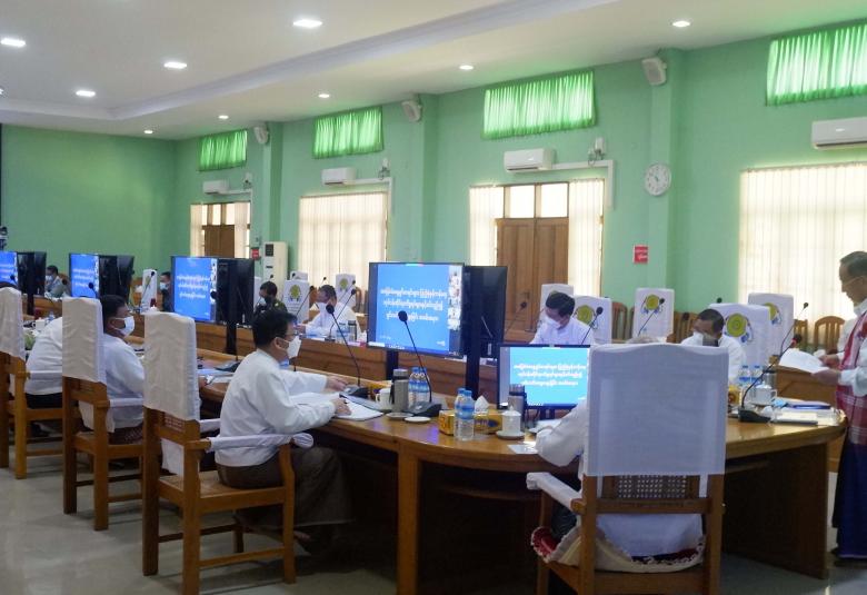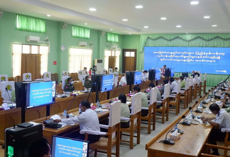 ဦးစွာ နိုင်ငံတော်စီမံအုပ်ချုပ်ရေးကောင်စီ အဖွဲ့ဝင်မန်းငြိမ်းမောင်က နိုင်ငံတော်စီမံ အုပ်ချုပ်ရေးကောင်စီ၏ ရှေ့လုပ်ငန်းစဉ်(၅)ရပ်အနက် နောက်ဆုံးလုပ်ငန်းစဉ်အရ ပြည်ထောင်စုရွေးကောက်ပွဲကော်မရှင်၏ မဲစာရင်းများ မှန်ကန်စေရေးအတွက် မြေပြင် စာရင်းများမှန်ကန်ရေး ဆောင်ရွက်လျက်ရှိကြောင်း၊ မဲစာရင်းဆောင်ရွက်နိုင်ရေးအတွက် အိမ်ထောင်စု လူဦးရေစာရင်းနှင့် ကိုင်ဆောင်လက်မှတ်တစ်ခုခု ရှိရမည်ဖြစ်ကြောင်း၊ မကြာမီကျင်းပမည့် ရွေးကောက်ပွဲ၌ ဥပဒေနှင့်အညီ ဆန္ဒမဲပေးပိုင်ခွင့်ရှိသည့် နိုင်ငံသား၊ ဧည့်နိုင်ငံသား၊ နိုင်ငံသားပြုခွင့်ရသူများကို မဲဆန္ဒရှင် စာရင်းပြည့်စုံ မှန်ကန်စေရေးအတွက် လူဝင်မှုကြီးကြပ်ရေးနှင့် ပြည်သူ့အင်အားဝန်ကြီးဌာနအနေဖြင့် နိုင်ငံသားကတ် တစ်မျိုးမျိုးအား အချိန်မီလက်ဝယ်ရရှိ ကိုင်ဆောင်နိုင်ရေးအတွက် ဆောင်ရွက်ပေးလျက် ရှိကြောင်း၊ မဲစာရင်းများ မှန်ကန်စေရေးအတွက် ပြည်ထောင်စုရွေးကောက်ပွဲကော်မရှင်၊ အထွေထွေအုပ်ချုပ်ရေးဦးစီးဌာန၊ လူဝင်မှုကြီးကြပ်ရေးနှင့် ပြည်သူအင်အားဝန်ကြီးဌာန တို့ပူးပေါင်း၍ မြေပြင်လူဦးရေတိုက်ဆိုင်စစ်ဆေးခြင်းလုပ်ငန်းကို ဆောင်ရွက်လျက် ရှိကြောင်း၊ ပူးပေါင်းပါဝင်ဆောင်ရွက်လျက်ရှိသော ဝန်ကြီးဌာနများအနေဖြင့် မိမိတို့ဆောင် ရွက်ရမည့် သက်ဆိုင်ရာ လုပ်ငန်းများအလိုက် အထူးအလေးထား၍ ကြိုးပမ်းဆောင် ရွက်ကြရန် လိုအပ်မည်ဖြစ်ကြောင်း ပြောကြားသည်။