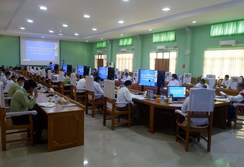 ယင်းနောက် ကရင်ပြည်နယ် အစိုးရအဖွဲ့အတွင်းရေးမှူး ဦးကျော်စိုး၊ ပြည်နယ် လူမှုရေးရာဝန်ကြီး ဦးစိုးလွင် တို့က မြေပြင်လူဦးရေစာရင်း တိုက်ဆိုင်စစ်ဆေးခြင်း လုပ်ငန်း မြေပြင်ဆောင်ရွက်ပြီးစီးမှုကို ရှင်းလင်းဆွေးနွေးပြီး ကရင်ပြည်နယ် ရွေးကောက်ပွဲကော်မရှင် အဖွဲ့ခွဲ ရွေးကောက်ပွဲအရာရှိ ဦးမောင်မောင်နိုင်က မဲဆန္ဒရှင် စာရင်းများနှင့် စပ်လျဉ်း၍ ဆောင်ရွက်မှုကို ရှင်းလင်းတင်ပြသည်။