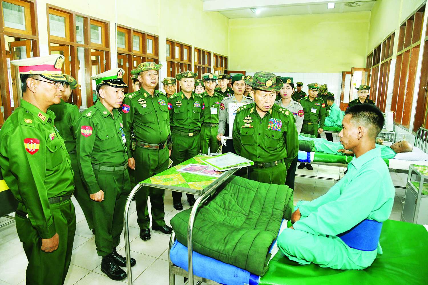 ထို့နောက် နိုင်ငံတော်စီမံအုပ်ချုပ်ရေးကောင်စီ ဒုတိယဥက္ကဋ္ဌ ဒုတိယတပ်မတော်ကာကွယ်ရေးဦးစီးချုပ် ကာကွယ်ရေးဦးစီးချုပ် (ကြည်း) အား ဆေးရုံတပ်မှူးက ဆေးရုံအစည်းအဝေးခန်းမ၌ အရာရှိ၊ စစ်သည်များ၊ ပြည်သူ့စစ် (ဌာနေ) တပ်ဖွဲ့ဝင်များနှင့် ဒေသခံပြည်သူများကို ကျန်းမာရေးစောင့်ရှောက်ပေးထားမှု အခြေအနေနှင့် အခြားလိုအပ်ချက်များကို ရှင်းလင်းတင်ပြရာ နိုင်ငံတော်စီမံအုပ်ချုပ်ရေးကောင်စီ ဒုတိယဥက္ကဋ္ဌ ဒုတိယတပ်မတော် ကာကွယ်ရေးဦးစီးချုပ် ကာကွယ်ရေးဦးစီးချုပ် (ကြည်း) က လိုအပ်သည်များ လမ်းညွှန်မှာကြားပြီး လိုအပ်ချက်များအပေါ် ဖြည့်ဆည်းဆောင်ရွက်ပေးသည်။