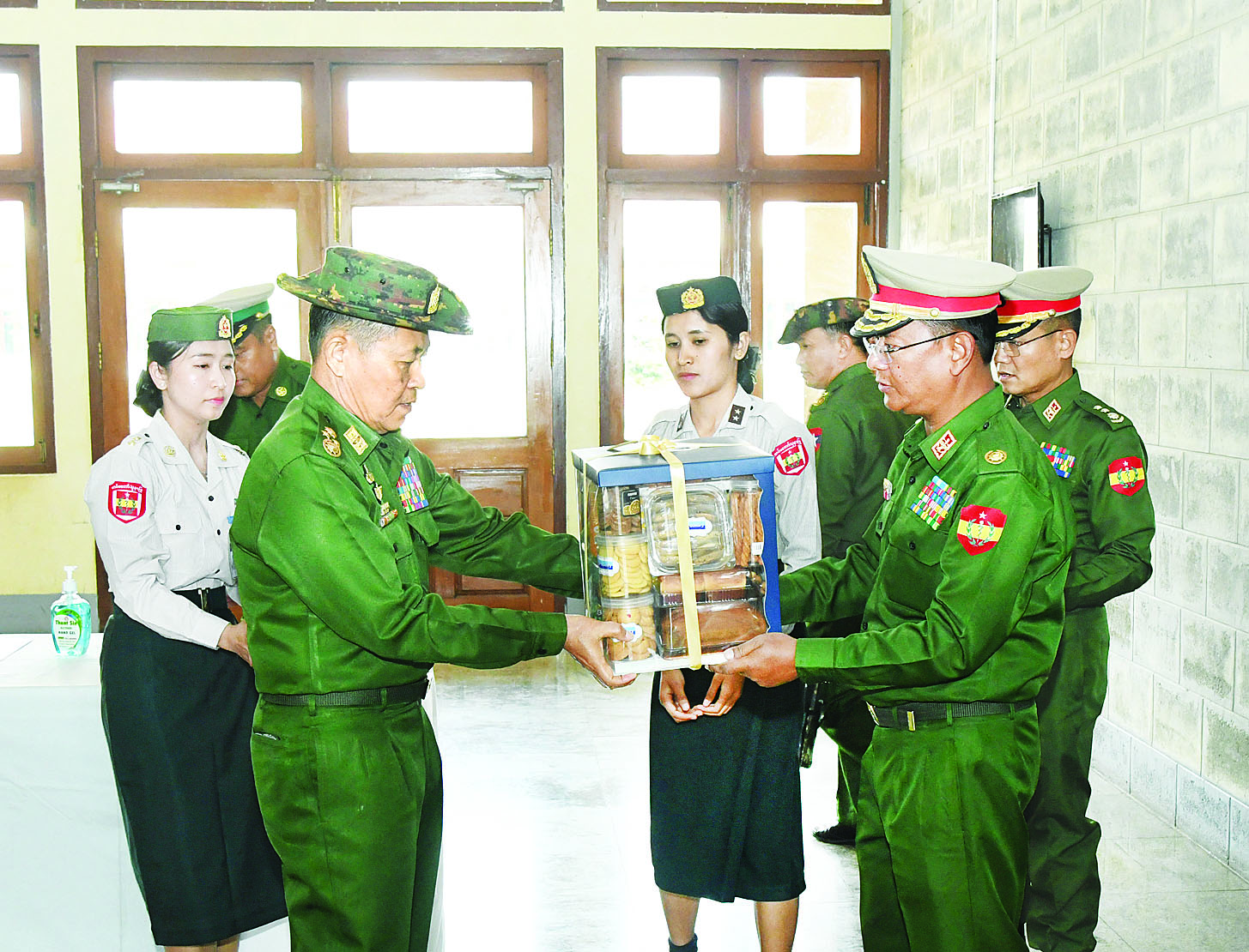 ထို့နောက် နိုင်ငံတော်စီမံအုပ်ချုပ်ရေးကောင်စီ ဒုတိယဥက္ကဋ္ဌ ဒုတိယတပ်မတော်ကာကွယ်ရေးဦးစီးချုပ် ကာကွယ်ရေးဦးစီးချုပ် (ကြည်း) သည် ဆေးရုံတွင် တာဝန်ထမ်းဆောင်လျက်ရှိသည့် ကျန်းမာရေးဝန်ထမ်းများအတွက် လက်ဆောင်ပစ္စည်းများနှင့် ချီးမြှင့်ငွေများကိုပေးအပ်ရာ တာဝန်ရှိသူများက လက်ခံရယူခဲ့ကြကြောင်း သတင်းရရှိသည်။