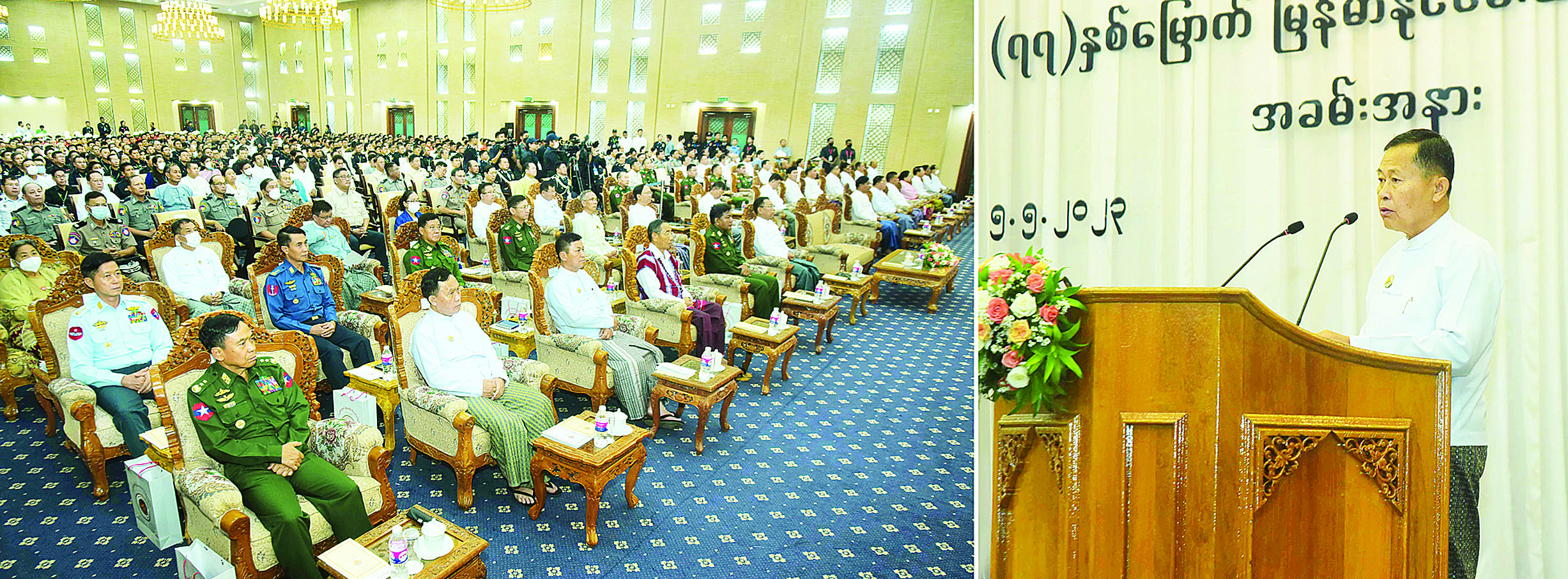 မိမိတို့အနေဖြင့် ငြိမ်းချမ်းသာယာဖွံ့ဖြိုးတိုးတက်သော ခေတ်မီနိုင်ငံတော်တစ်ရပ်အဖြစ်ကို ရောက်ရှိ အောင် တည်ဆောက်နေသည့် အချိန်အခါတွင် နိုင်ငံတော်စီမံအုပ်ချုပ်ရေးကောင်စီက ချမှတ်ထားသည့် ရှေ့လုပ်ငန်းစဉ် (၅) ရပ်၊ ဦးတည်ချက် (၁၂)ရပ်ကို အပြည့်အဝ အောင်မြင်ရန်အတွက် မီးသတ်တပ်ဖွဲ့ဝင် များအနေဖြင့် သက်ဆိုင်ရာကဏ္ဍအလိုက် ဦးလည်မသုန် အလေးအနက်ထားပြီး အကောင်အထည်ဖော် ဆောင်ရွက်သွားကြရန် မှာကြားလိုကြောင်း။