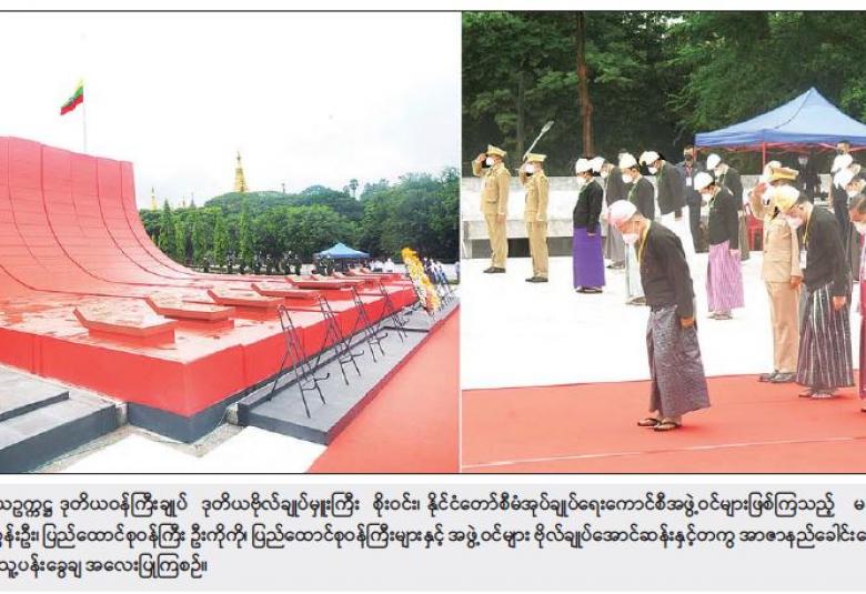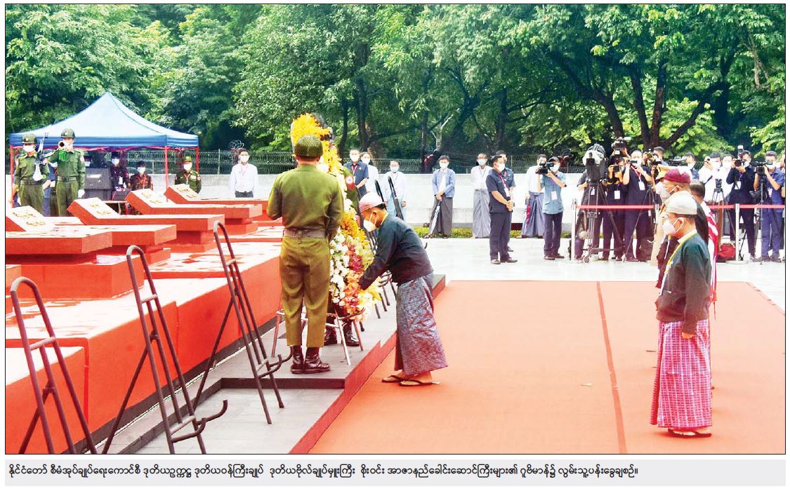 ၂၀၂၂ ခုနှစ် (၇၅)နှစ်မြောက်အာဇာနည်နေ့ အခမ်းအနားကို ယနေ့နံနက် ၈ နာရီတွင် ရန်ကုန်မြို့ ဗဟန်းမြို့နယ်ရှိ အာဇာနည်ဗိမာန်၌ကျင်းပရာ နိုင်ငံတော်စီမံအုပ်ချုပ်ရေးကောင်စီ ဒုတိယဥက္ကဋ္ဌ ဒုတိယဝန်ကြီးချုပ် ဒုတိယဗိုလ်ချုပ်မှူးကြီးစိုးဝင်း တက်ရောက်ဂါရဝပြုသည်။