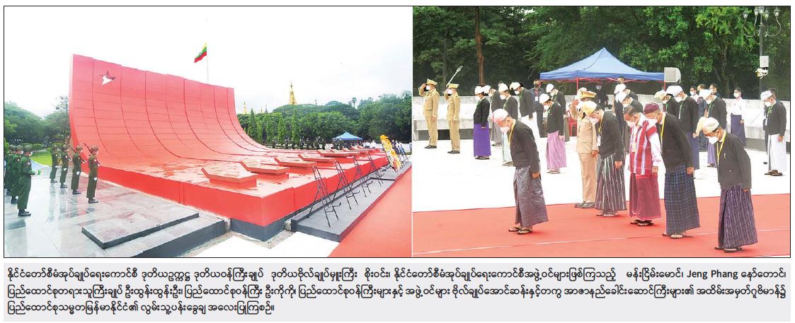 ထို့နောက် နိုင်ငံတော်စီမံအုပ်ချုပ်ရေးကောင်စီ ဒုတိယဥက္ကဋ္ဌ၊ ဒုတိယဝန်ကြီးချုပ်၊ ဒုတိယဗိုလ်ချုပ်မှူးကြီးစိုးဝင်းနှင့် တက်ရောက်လာကြသူများက ဗိုလ်ချုပ်အောင်ဆန်းနှင့်တကွ အာဇာနည်ခေါင်းဆောင်ကြီးများ၏ ဂူဗိမာန်၌ ပြည်ထောင်စုသမ္မတမြန်မာနိုင်ငံတော်၏ လွမ်းသူ့ပန်းခွေကိုချ၍ အလေးပြုကြသည်။