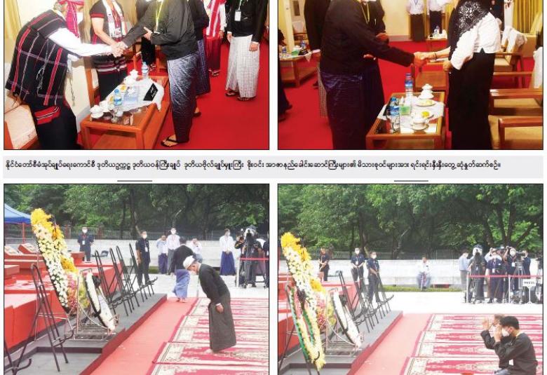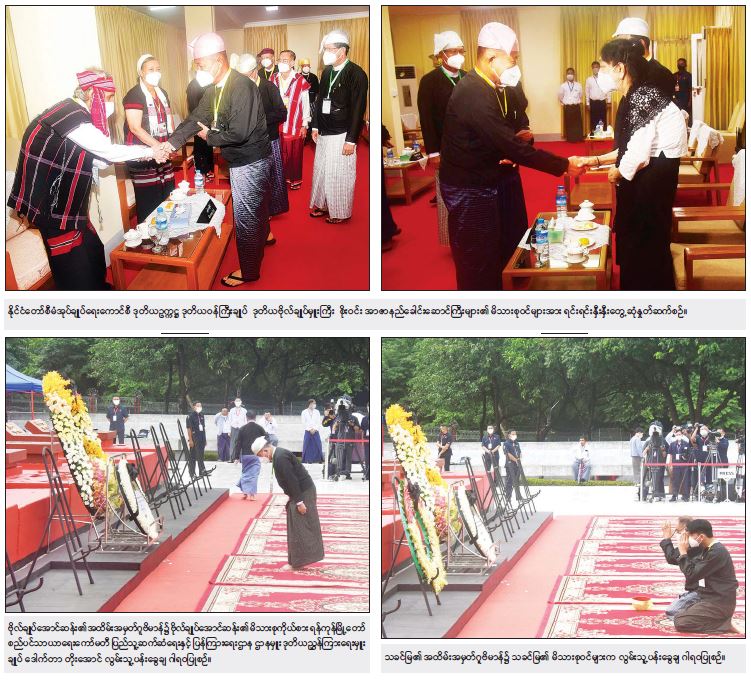 ထို့နောက် မြန်မာနိုင်ငံစစ်မှုထမ်းဟောင်းအဖွဲ့၊ မြန်မာနိုင်ငံကြက်ခြေနီအသင်း၊ မြန်မာနိုင်ငံရုပ်ရှင်အစည်းအရုံး၊ မြန်မာနိုင်ငံဂီတအစည်းအရုံး၊ မြန်မာနိုင်ငံသဘင်အစည်းအရုံး၊ မြန်မာနိုင်ငံ ပန်းချီ/ပန်းပု အစည်းအရုံး(ဗဟို)၊ မြန်မာနိုင်ငံစာပေထုတ်ဝေသူနှင့် ဖြန့်ချိသူများအသင်း၊ မြန်မာနိုင်ငံစာရေးဆရာအသင်း၊ မြန်မာနိုင်ငံသတင်းမီဒီယာကောင်စီ၊ မြန်မာနိုင်ငံသတင်းစာဆရာအသင်း၊ မြန်မာနိုင်ငံအမျိုးသမီးရေးရာအဖွဲ့ချုပ်၊ မြန်မာနိုင်ငံမိခင်နှင့်ကလေးစောင့်ရှောက်ရေးအသင်း၊ မြန်မာနိုင်ငံအင်ဂျင်နီယာကောင်စီနှင့် မြန်မာနိုင်ငံဆရာဝန်အသင်းတို့ အပါအဝင် လူမှုရေးအသင်းအဖွဲ့များမှ ကိုယ်စားလှယ်များက ဗိုလ်ချုပ်အောင်ဆန်းနှင့်တကွ အာဇာနည်ခေါင်းဆောင်ကြီးများ၏ အထိမ်းအမှတ်ဂူဗိမာန်၌ လွမ်းသူ့ပန်းခွေချ အလေးပြုကြသည်။
