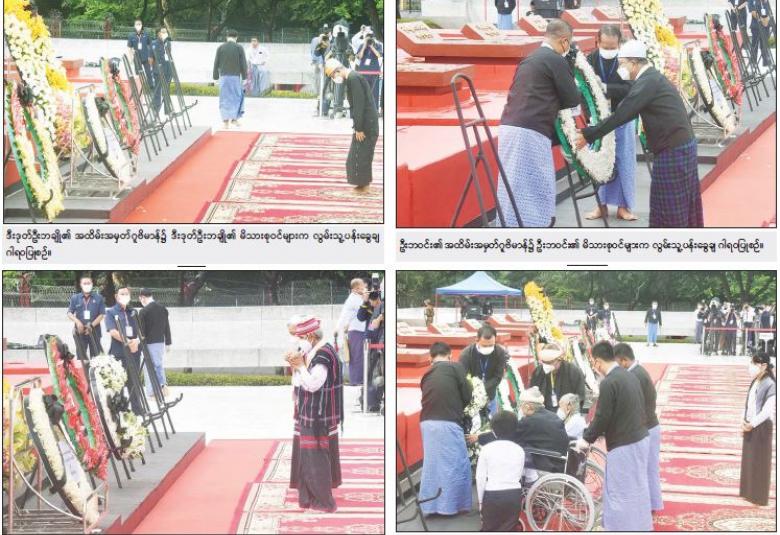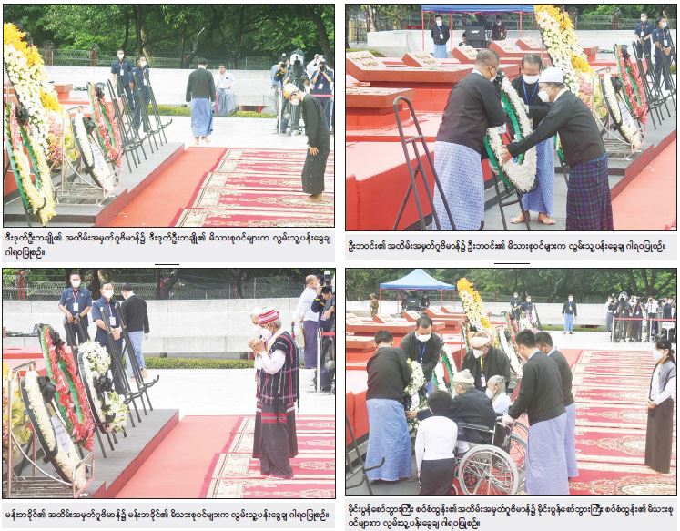 ဆက်လက်၍ ရန်ကုန်တိုင်း‌ဒေသကြီးအစိုးရအဖွဲ့၊ နိုင်ငံရေးပါတီများမှ ကိုယ်စားလှယ်များ၊ မြန်မာနိုင်ငံဆိုင်ရာ နိုင်ငံခြားသံရုံးများမှ သံရုံးအကြီးအကဲများနှင့် သံရုံးယာယီတာဝန်ခံများက ဗိုလ်ချုပ်အောင်ဆန်းနှင့်တကွ အာဇာနည်ခေါင်းဆောင်ကြီးများ၏ အထိမ်းအမှတ်ဂူဗိမာန်၌ လွမ်းသူ့ပန်းခွေချ အလေးပြုကြသည်။
