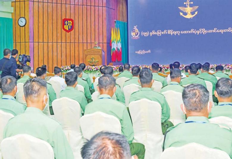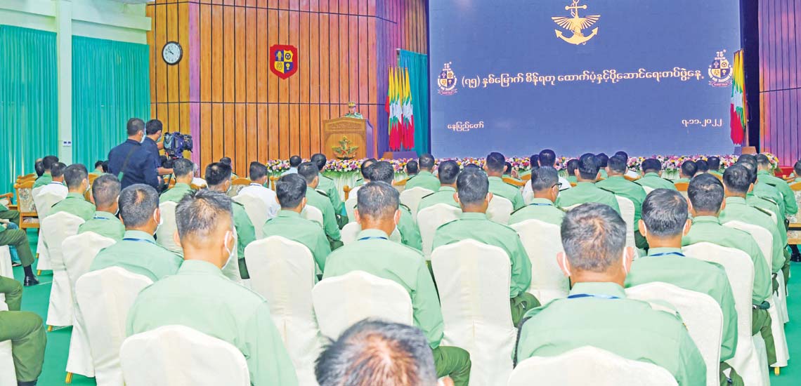 (၇၅) နှစ်မြောက် စိန်ရတု ထောက်ပံ့နှင့်ပို့ဆောင်ရေးတပ်ဖွဲ့နေ့အခမ်းအနားကို ယနေ့နံနက်ပိုင်းတွင် နေပြည်တော်၊ စစ်ကြောရေးနှင့်တည်ခိုးရေးစခန်းရှိ ဆင်ဖြူရှင်ခန်းမ၌ ကျင်းပပြုလုပ်ရာ နိုင်ငံတော်စီမံအုပ်ချုပ်ရေးကောင်စီဒုတိယဥက္ကဋ္ဌ ဒုတိယတပ်မတော်ကာကွယ်ရေးဦးစီးချုပ် ကာကွယ်ရေးဦးစီးချုပ် (ကြည်း) ဒုတိယဗိုလ်ချုပ်မှူးကြီး စိုးဝင်း တက်ရောက်ချီးမြှင့်သည်။
