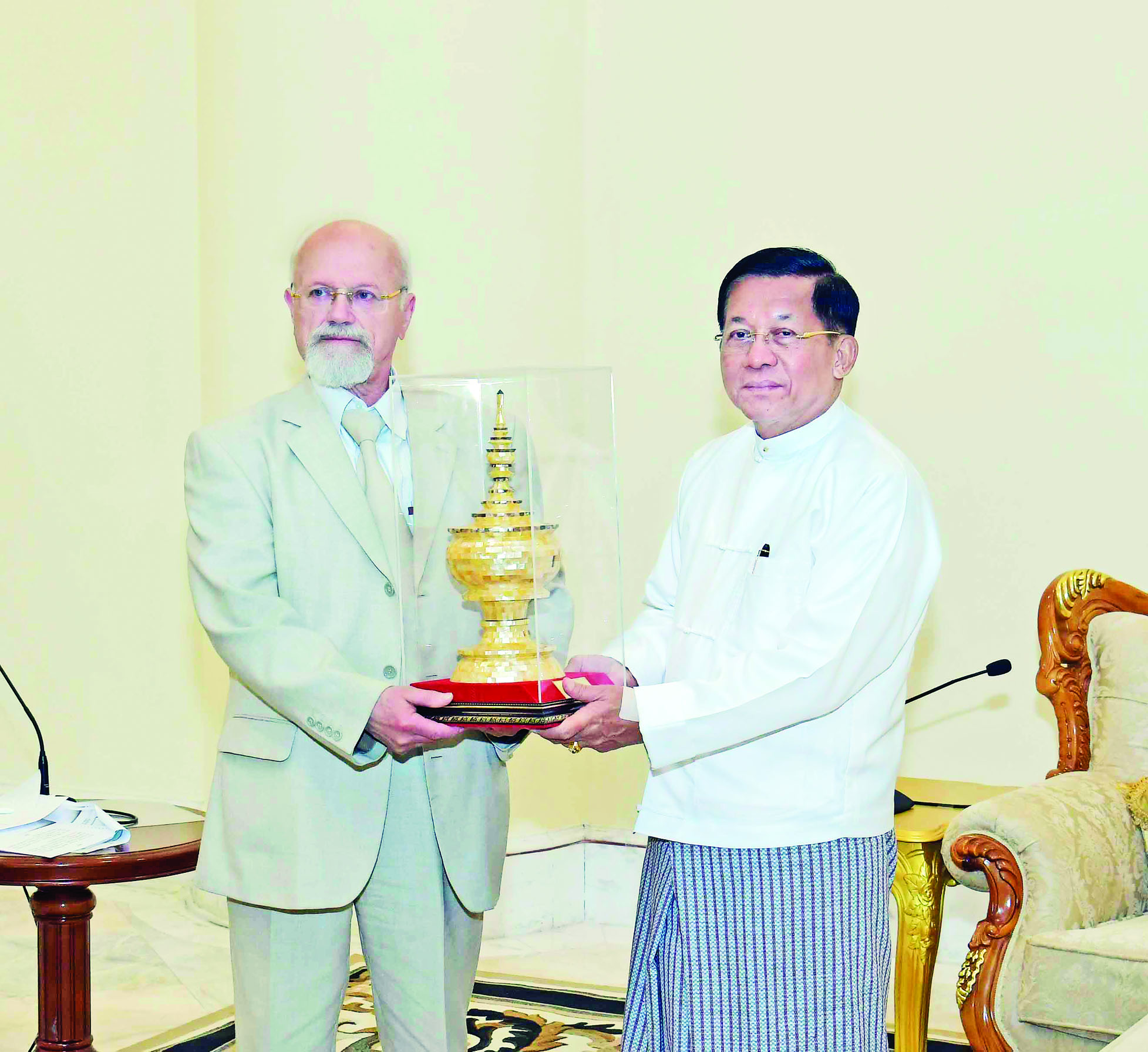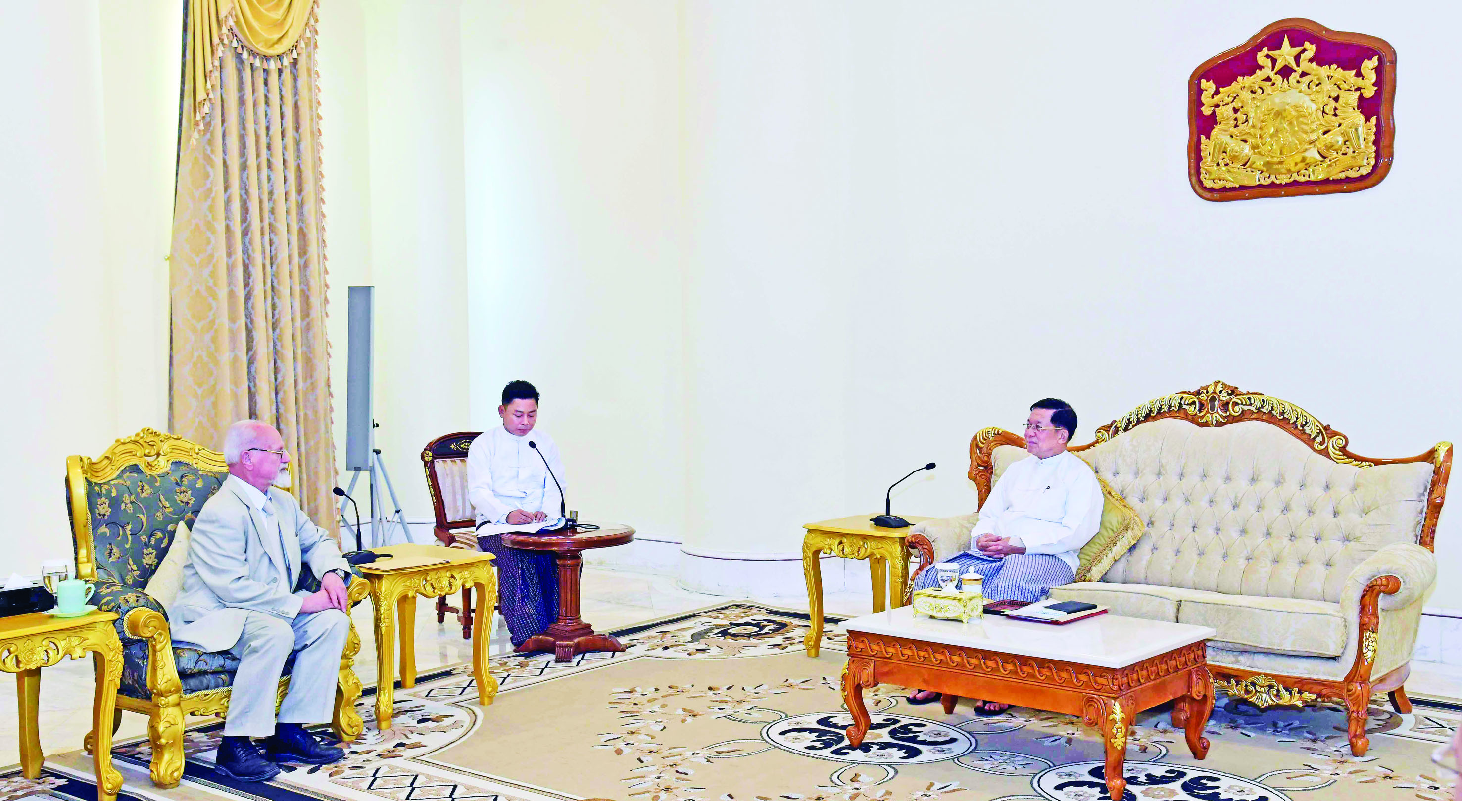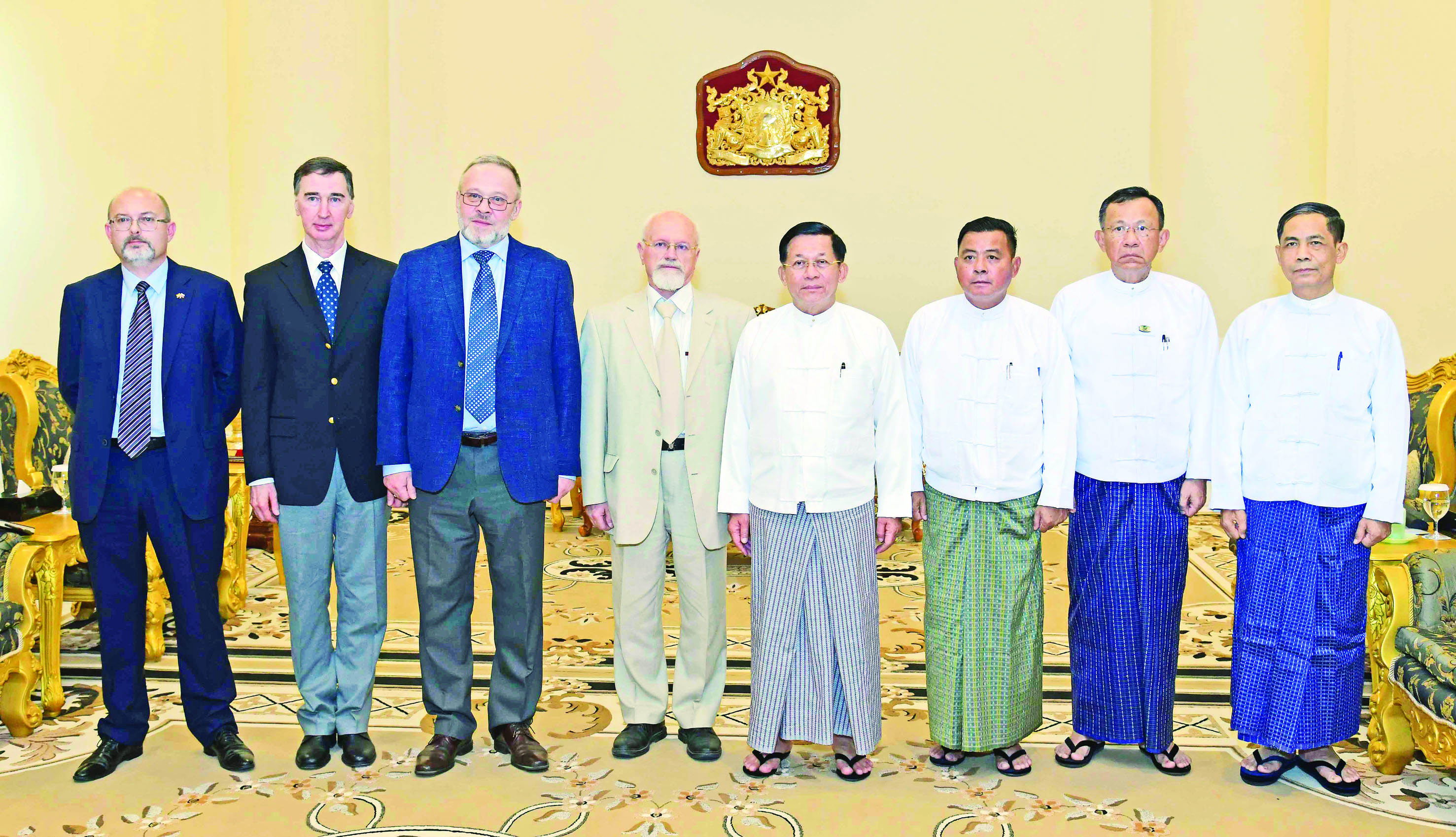 နိုင်ငံတော်စီမံအုပ်ချုပ်ရေးကောင်စီဥက္ကဋ္ဌ နိုင်ငံတော်ဝန်ကြီးချုပ် ဗိုလ်ချုပ်မှူးကြီး မင်းအောင်လှိုင် ထံ ရုရှား - မြန်မာ ချစ်ကြည်ရေးနှင့် ပူးပေါင်းဆောင်ရွက်ရေးအသင်း ဒုတိယဥက္ကဋ္ဌ Mr. Anatoly Bulochnikov ဦးဆောင်သော ကိုယ်စားလှယ်အဖွဲ့ ယနေ့ မွန်းလွဲပိုင်းတွင် နေပြည်တော်ရှိ နိုင်ငံတော်စီမံအုပ်ချုပ်ရေးကောင်စီဥက္ကဋ္ဌရုံး ဧည့်ခန်းမ၌ လာရောက်ဂါရဝပြုတွေ့ဆုံသည်။
