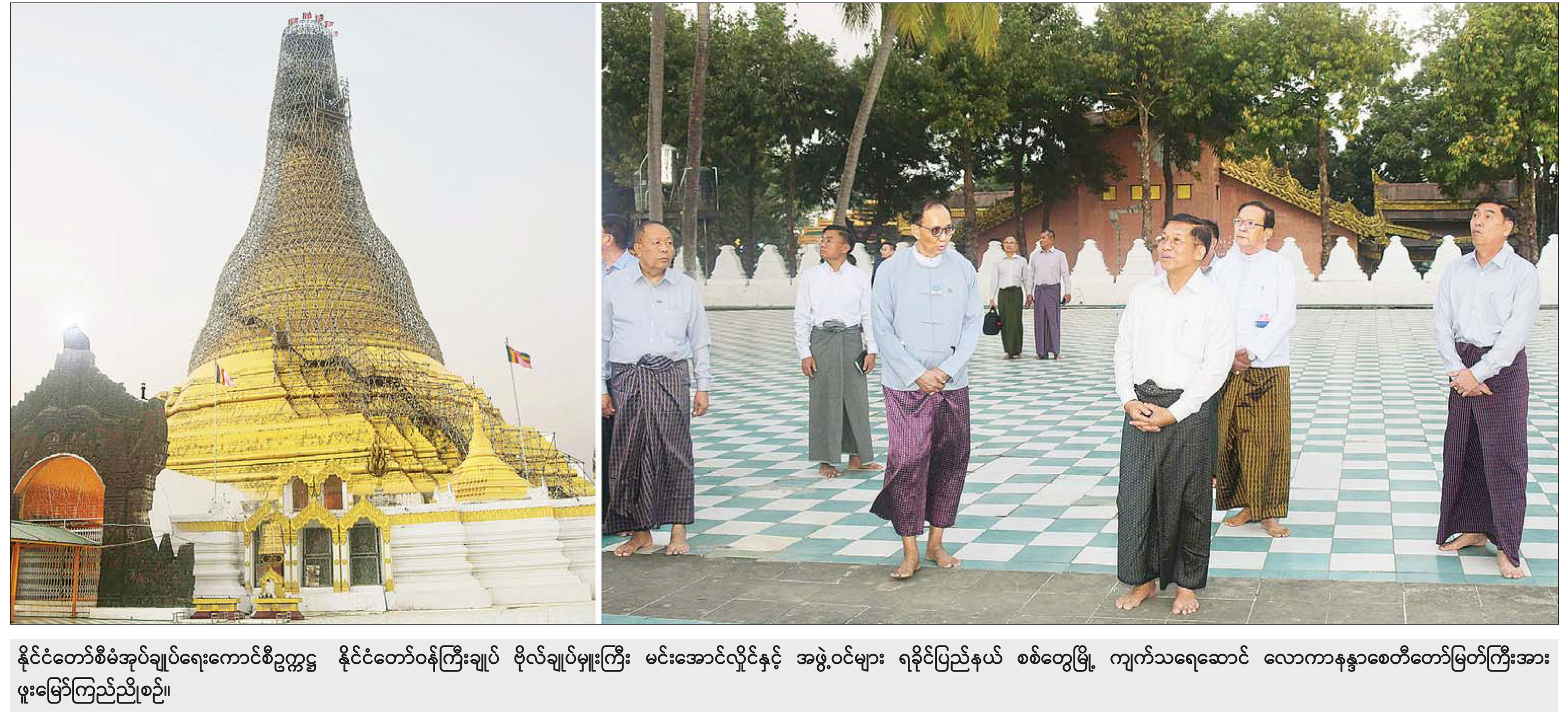 ထို့နောက် နိုင်ငံတော်စီမံ အုပ်ချုပ်ရေးကောင်စီဥက္ကဋ္ဌ နိုင်ငံတော်ဝန်ကြီးချုပ်နှင့် ဇနီးတို့က စေတီတော်ကြီး ဘက်စုံပြုပြင် မွမ်းမံရန်အတွက် အလှူငွေများ ပေးအပ်လှူဒါန်းရာ ဂေါပကအဖွဲ့မှ တာဝန်ရှိသူများက လက်ခံရယူသည်။ ဆက်လက်၍ နိုင်ငံတော်စီမံ အုပ်ချုပ်ရေးကောင်စီဥက္ကဋ္ဌ နိုင်ငံ တော်ဝန်ကြီးချုပ်သည် စေတီတော်ကြီး အတွင်းလိုဏ် ပြုပြင် မွမ်းမံခြင်းလုပ်ငန်းများ ဆောင်ရွက်ခဲ့မှု မှတ်တမ်းဓာတ်ပုံများကို ကြည့်ရှုပြီး စေတီတော်ကြီးအား လက်ယာရစ် လှည့်လည်ဖူးမြော် ကြည်ညို၍ စေတီတော်ကြီး ရေရှည်တည်တံ့ခိုင်မြဲရေးအတွက် ထိန်းသိမ်းဆောင်ရွက်ရန်နှင့် အခြားလိုအပ်သည်များကို တာဝန်ရှိသူများအား မှာကြားသည်။