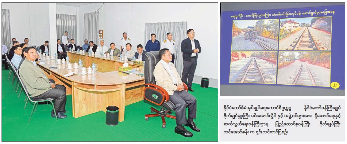 ရှင်းလင်းတင်ပြမှုများအပေါ် နိုင်ငံတော်စီမံအုပ်ချုပ်ရေးကောင်စီဥက္ကဋ္ဌ နိုင်ငံတော်ဝန်ကြီးချုပ်က ရထားလမ်းသယ်ယူပို့ဆောင်ရေးသည် ဒေသအတွက် များစွာအကျိုးရှိစေမည့် စီမံကိန်းတစ်ခုဖြစ်ကြောင်း၊ ယခု  ရွှေညောင်-တောင်ကြီး ရထားလမ်းပိုင်း အဆင့်မြှင့်တင်ရေးစီမံကိန်းကို သာမာန်ခရီးသွားပြည်သူများ သွားလာအသုံးပြုနိုင်ရန်၊ ကုန်စည်များပိုမိုကူးသန်းရောင်းဝယ်နိုင်ရန်၊ ဒေသတွင်းရှိ တွင်းထွက်ပစ္စည်းများနှင့် ထုတ်ကုန်ပစ္စည်းများ ပိုမိုကူးသန်းရောင်းဝယ်နိုင်ရန်၊ ခရီးသွားပြည်သူများကို ဆွဲဆောင်နိုင်ရန်ရည်ရွယ်ကြောင်း၊ နောက်ပိုင်းတွင် ပအိုဝ်း ဒေသအထိ တိုးချဲ့ပြေးဆွဲနိုင်ရေး ရည်ရွယ်ကြောင်း၊ သံလမ်းခင်းရာ၌ လမ်းခင်းကျောက်ထည့်သွင်းမှု၊ တံတားများ ထည့်သွင်းတည်ဆောက်မှုတို့ကို သတ်မှတ်အရည်အသွေးနှုန်းထားများအတိုင်း ပြည့်မီစွာခင်းကျင်းရန်လိုကြောင်း၊ လုပ်ငန်းလျင်မြန်စွာပြီးစီးစေရေးကိုသာ ဦးစားပေးဆောင်ရွက်ခဲ့ပြီး အရည်အသွေးပြည့်မီမှုမရှိခြင်းများ မဖြစ်စေလိုကြောင်း၊ ဘဝသံသရာ ရထားလမ်းအတိုင်း စနစ်တကျတည်ဆောက်ရန်လိုကြောင်း၊ ကားလမ်းများအနီးတွင်ရှိသည့် ရထားသံလမ်းပိုင်းနေရာများတွင် ဘေးအန္တရာယ်ကင်းရှင်းမှုရှိစေရေး အကာအရံဆောင်ရွက်ပေးရန်လိုကြောင်း၊ မြေထိန်းနံရံ(Toe Wall)များ၊ ရေကာနံရံများနှင့် ရေထုတ်ပြွန်များ၊ ရေထုတ်မြောင်းများကိုလည်း စနစ်တကျထည့်သွင်းဆောင်ရွက်သွားရန်လိုကြောင်းဖြင့် မှာကြားသည်။