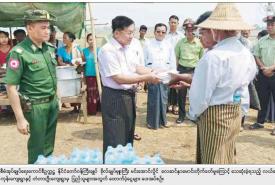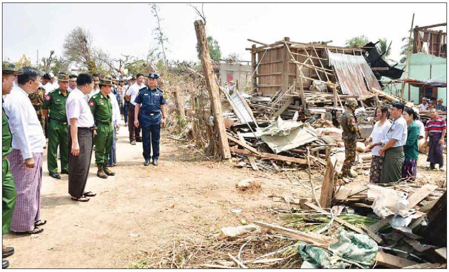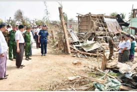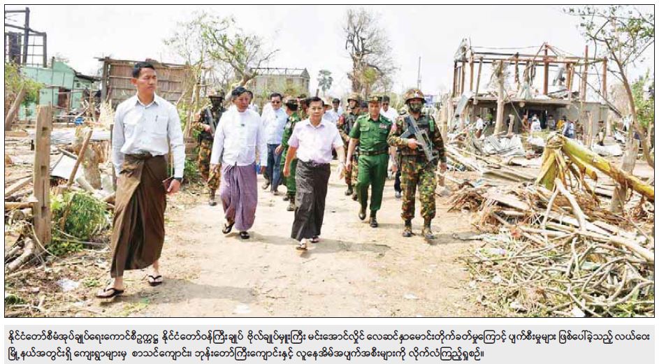 နိုင်ငံတော်စီမံအုပ်ချုပ်ရေးကောင်စီဥက္ကဋ္ဌ နိုင်ငံတော်ဝန်ကြီးချုပ် ဗိုလ်ချုပ်မှူးကြီး မင်းအောင်လှိုင် လေဆင်နှာမောင်းတိုက်ခတ်မှုကြောင့် ပျက်စီးမှုဖြစ်ပွားခဲ့သည့် လယ်ဝေးမြို့နယ်အတွင်းရှိကျေးရွာများမှ လေဘေးသင့်ပြည်သူများအား သွားရောက်ကြည့်ရှုအားပေး၊ လိုအပ်သည်များ ဖြည့်ဆည်းဆောင်ရွက်
