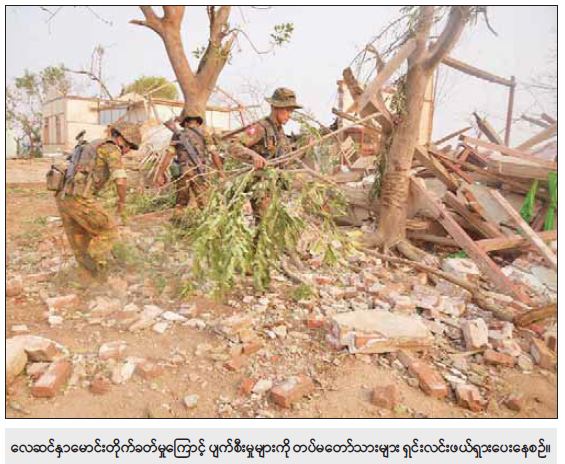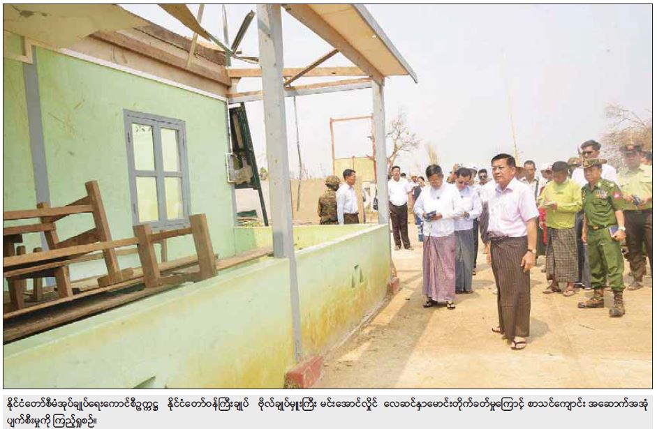 ယင်းနောက် နိုင်ငံတော်စီမံအုပ်ချုပ်ရေးကောင်စီဥက္ကဋ္ဌ နိုင်ငံတော်ဝန်ကြီးချုပ်နှင့် အဖွဲ့ဝင်များသည် လေဆင်နှာမောင်းတိုက်ခတ်မှုကြောင့် ပျက်စီးမှုများဖြစ်ပေါ်ခဲ့သည့် အောင်မြင်ကုန်းကျေးရွာစာသင်ကျောင်း၊ ဘုန်းတော်ကြီးကျောင်းနှင့် လူနေအိမ်များအားလိုက်လံကြည့်ရှုပြီး လိုအပ်သည်များကူညီဆောင်ရွက်ပေးရန် တာဝန်ရှိသူများကို မှာကြားသည်။