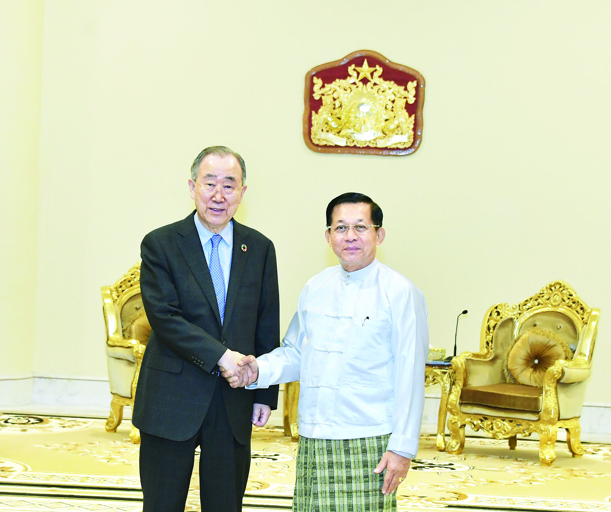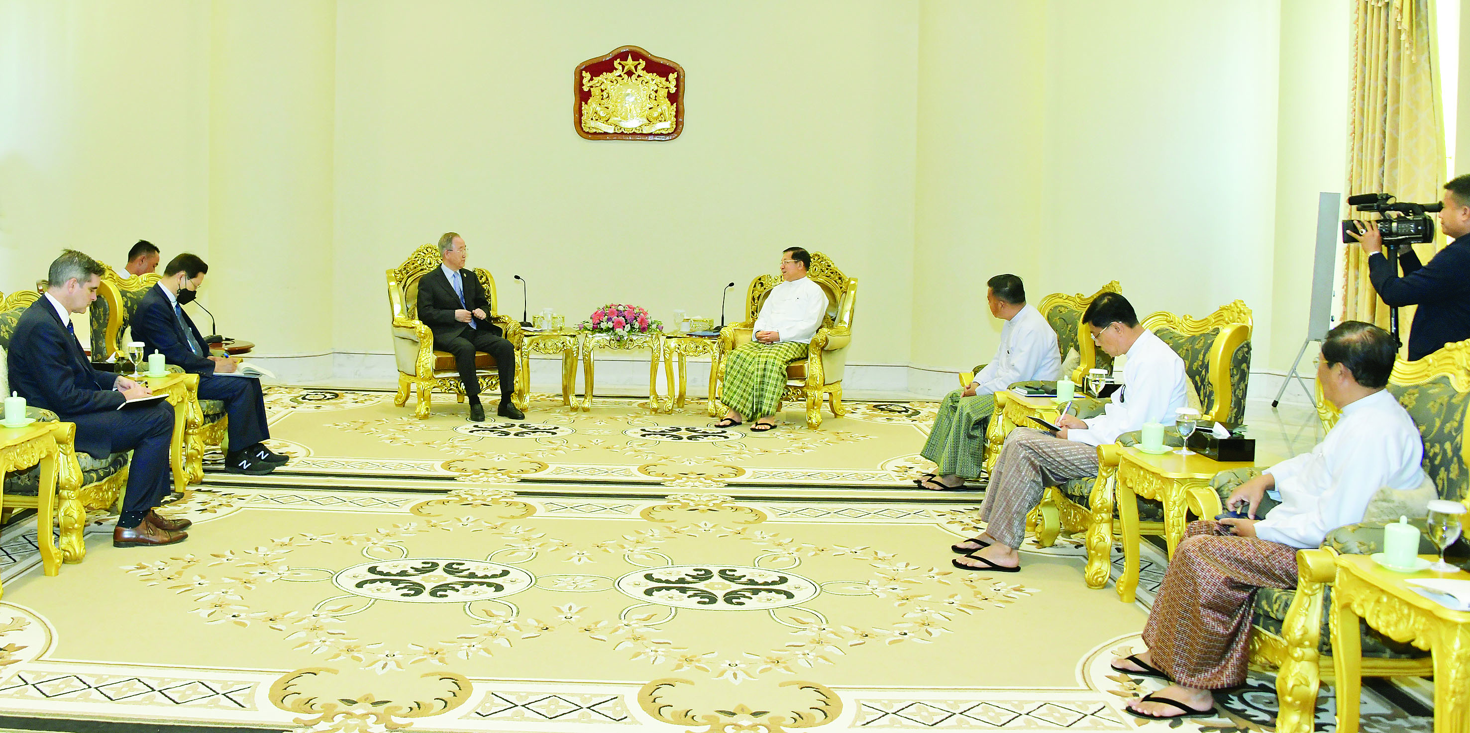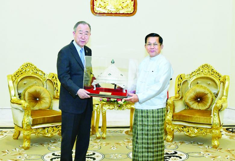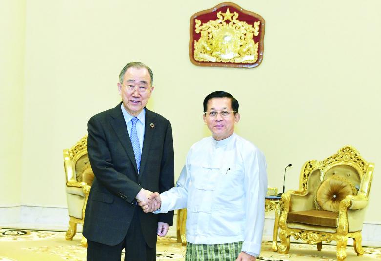 နိုင်ငံတော်စီမံအုပ်ချုပ်ရေးကောင်စီဥက္ကဋ္ဌ နိုင်ငံတော်ဝန်ကြီးချုပ် ဗိုလ်ချုပ်မှူးကြီး မင်းအောင်လှိုင်သည် The Elders အဖွဲ့ ဒုတိယဥက္ကဋ္ဌ ကုလသမဂ္ဂအတွင်းရေးမှူးချုပ်ဟောင်း မစ္စတာ ဘန်ကီမွန်းအား ယနေ့ နံနက်ပိုင်းတွင် နေပြည်တော်ရှိ နိုင်ငံတော် စီမံအုပ်ချုပ်ရေးကောင်စီ ဥက္ကဋ္ဌရုံး ဧည့်ခန်းမ၌ လက်ခံတွေ့ဆုံသည်။