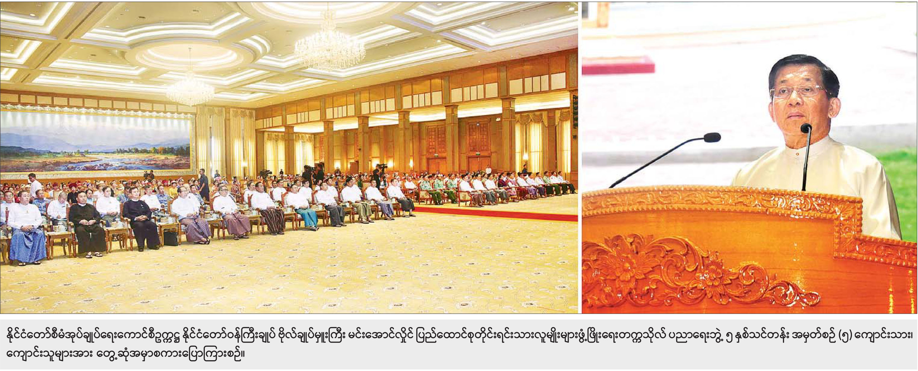 တိုင်းရင်းသားပြည်သူတစ်ရပ်လုံးက လိုလားတောင့်တနေကြသည့် ဒီမိုကရေစီနှင့် ဖက်ဒရယ် စနစ်ကိုအခြေခံသော ပြည်ထောင်စုနိုင်ငံတော်အဖြစ် တည်ဆောက်နိုင်ရန်အတွက် တစ်နိုင်ငံလုံး တည်ငြိမ်အေးချမ်းရေးနှင့် ထာဝရငြိမ်းချမ်းရေးရရှိရန် အဓိက လိုအပ်ကြောင်း၊ နိုင်ငံတော် စီမံအုပ်ချုပ်ရေးကောင်စီနှင့် တပ်မတော်တို့အနေဖြင့် တာဝန်ယူခဲ့သည့် ကာလအတွင်း ၂၀၂၂ ခုနှစ်ကို ငြိမ်းချမ်းရေးနှစ်အဖြစ် သတ်မှတ်ပြီး ပြည်တွင်းလက်နက်ကိုင် ပဋိပက္ခများ ချုပ်ငြိမ်းရေး၊ ရေရှည်တည်တံ့ခိုင်မြဲသည့် ထာဝရငြိမ်းချမ်းရေး ရရှိရန်အတွက် ကိုယ်တိုင်ကိုယ်ကျ တွေ့ဆုံဆွေးနွေးနိုင်ရေး ဖိတ်ခေါ်ကမ်းလှမ်းခဲ့ကြောင်း၊ ထိုသို့ဖိတ်ခေါ် ရာတွင် ယနေ့အထိ NCA လက်မှတ်ရေးထိုးပြီးဖြစ်သည့် တိုင်းရင်းသားလက်နက်ကိုင်အဖွဲ့ (၇) ဖွဲ့နှင့် လက်မှတ်ရေးထိုးခြင်း မပြုရသေးသည့် လက်နက်ကိုင် အဖွဲ့ (၃) ဖွဲ့ စုစုပေါင်း (၁၀) ဖွဲ့တို့က ကိုယ်စားလှယ်များနှင့် တွေ့ဆုံဆွေးနွေးနေရာတွင် နိုင်ငံရေးအရ တည်ငြိမ်အေးချမ်းစွာ လျှောက်လှမ်းနိုင်မည့် ရလဒ်များ ရရှိနေပြီဖြစ်ကြောင်း၊ ငြိမ်းချမ်းရေး စားပွဲဝိုင်းကို ရောက်ရှိလာခြင်းမရှိသေးသည့် တိုင်းရင်းသားအဖွဲ့အစည်းများကိုလည်း ကြိုတင် ကန့်သတ်ချက် တစ်ခုမှမထားဘဲ တွေ့ဆုံဆွေးနွေးခြင်းကို အစဉ်အမြဲ တံခါးဖွင့် ကြိုဆိုထားသည်ကို အားလုံးအသိပင်ဖြစ်ကြောင်း။