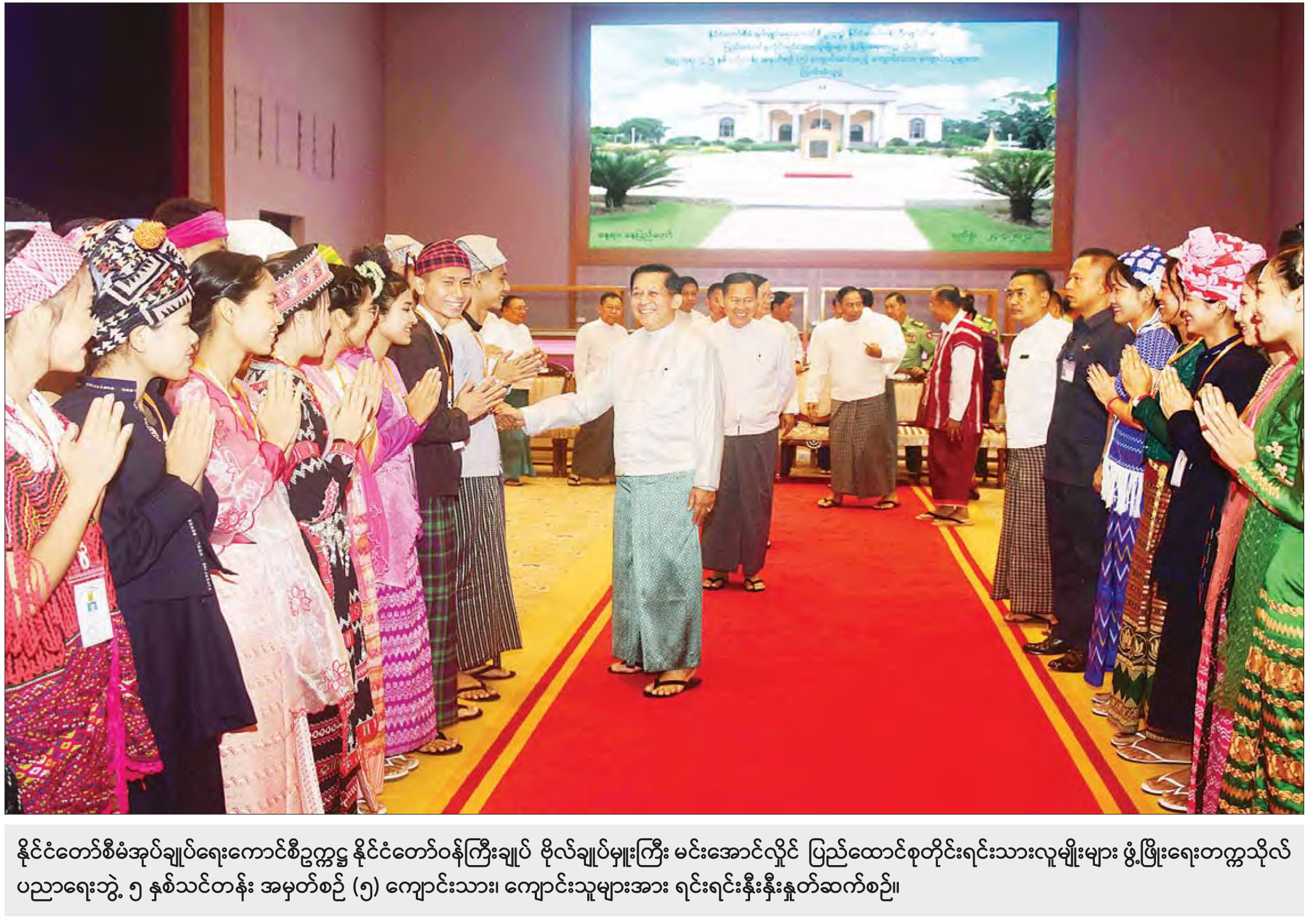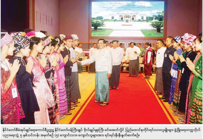နိုင်ငံတော်စီမံအုပ်ချုပ်ရေးကောင်စီဥက္ကဋ္ဌ နိုင်ငံတော်ဝန်ကြီးချုပ် ဗိုလ်ချုပ်မှူးကြီး မင်းအောင်လှိုင်သည် ပြည်ထောင်စုတိုင်းရင်းသားလူမျိုးများ ဖွံ့ဖြိုးရေး တက္ကသိုလ် ပညာရေးဘွဲ့ ၅ နှစ်သင်တန်း အမှတ်စဉ် (၅) ကျောင်းသား၊ ကျောင်းသူများကို ယနေ့ မွန်းလွဲပိုင်းတွင် နိုင်ငံတော်စီမံအုပ်ချုပ်ရေးကောင်စီ ဥက္ကဋ္ဌရုံး ငုရွှေဝါခန်းမ၌ တွေ့ဆုံအမှာစကား ပြောကြားသည်။