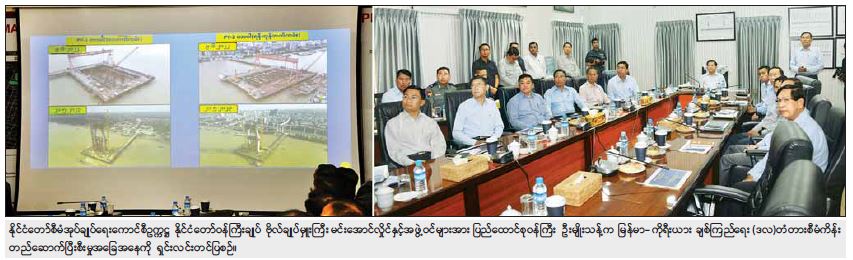 ရှင်းလင်းတင်ပြမှုများအပေါ် နိုင်ငံတော်စီမံအုပ်ချုပ်ရေးကောင်စီဥက္ကဋ္ဌ နိုင်ငံတော် ဝန်ကြီးချုပ်က စီမံကိန်းတွင် အသုံးပြုသည့် သံနှင့် သံမဏိပစ္စည်းများ ဆားငန်ရေဒဏ် ခံနိုင်စေရေးနှင့် စံချိန်စံညွှန်းကိုက်ညီစေရေး စနစ်တကျဆောင်ရွက်ရန်လိုကြောင်း၊ စီမံကိန်းအပိုင်းအလိုက် ဆောင်ရွက်၍ရသည့်လုပ်ငန်းများကို ကြိုတင်ပြီးစီးအောင် ဆောင်ရွက်ပြီး စီမံကိန်းတစ်ခုလုံး သတ်မှတ်ကာလအတွင်းပြီးစီးနိုင်ရေး ဆောင်ရွက်သွားရန်လိုကြောင်းဖြင့် ပြောကြားသည်။