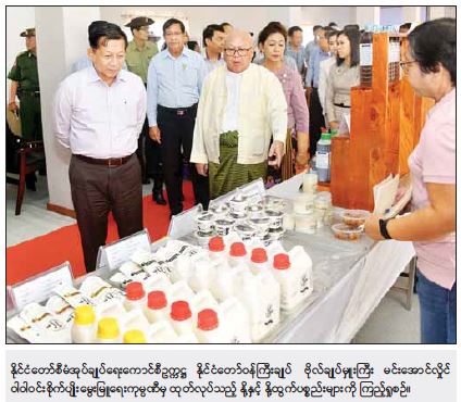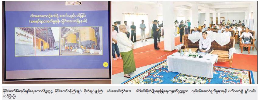 ထို့နောက် နိုင်ငံတော်စီမံအုပ်ချုပ်ရေးကောင်စီဥက္ကဋ္ဌ နိုင်ငံတော်ဝန်ကြီးချုပ်နှင့် အဖွဲ့ဝင်များသည် ကုမ္ပဏီမှ ထုတ်လုပ်ထားသည့် ပစ္စည်းများ ခင်းကျင်းပြသထားမှုများကို လိုက်လံကြည့်ရှုပြီး တာဝန်ရှိသူများ၏ တင်ပြချက်များအပေါ် သိရှိလိုသည်များပြန်လည် မေးမြန်းဆွေးနွေး ပြောကြားသည်။
