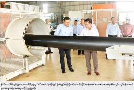 ရှင်းလင်းတင်ပြမှုများအပေါ် နိုင်ငံတော်စီမံအုပ်ချုပ်ရေးကောင်စီဥက္ကဋ္ဌ နိုင်ငံတော်ဝန်ကြီးချုပ်က ထုတ်ကုန်ပစ္စည်းများအပေါ် ဈေးကွက်ရရှိမှုအခြေအနေများအား မေးမြန်းပြီး နိုင်ငံတည်ဆောက်ရေး လုပ်ငန်းများနှင့် စိုက်ပျိုးရေးလုပ်ငန်းများအတွက် လိုအပ်သည့် ရေပိုက်အမျိုးမျိုးကို ထုတ်လုပ်နိုင်ရန်လိုကြောင်း၊ ရေပိုက်စနစ်ဖြင့် ဆောင်ရွက်မည်ဆိုပါက နိုင်ငံအတွင်းရှိ အဖိုးတန်ရေသယံဇာတများကို အကျိုးရှိစွာ အသုံးပြုနိုင်မည်ဖြစ်ပြီး လေလွင့်ဆုံးရှုံးမှုများ နည်းပါးစေမည်ဖြစ်ကြောင်း၊ စိုက်ပျိုးရေးလုပ်ငန်းများတွင် ရေအသုံးပြုမှုကို ပိုက်စနစ်၊ ပန့်စနစ်များဖြင့် စနစ်တကျအသုံးပြုမည်ဆိုပါက ရေကို ထိထိရောက်ရောက် အသုံးချနိုင်မည်ဖြစ်ကြောင်းဖြင့် ပြောကြားပြီး အခြားသိရှိလိုသည်များကို မေးမြန်းဆွေးနွေးသည်။