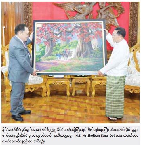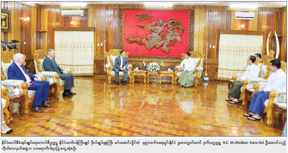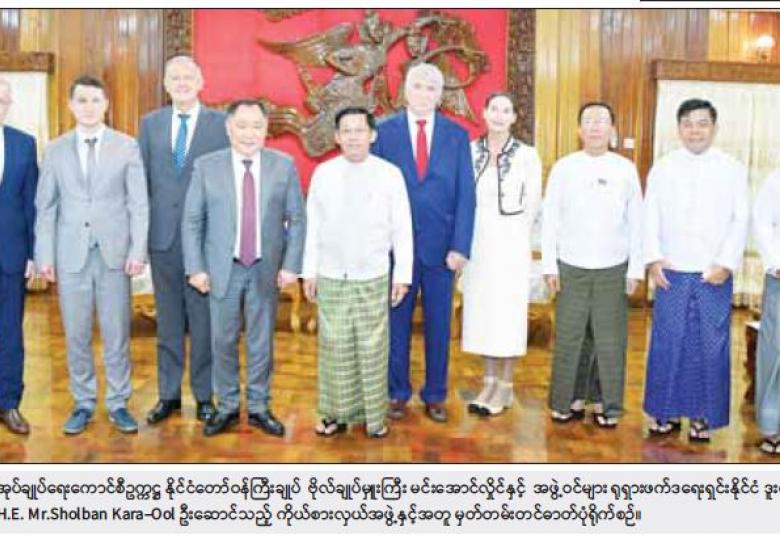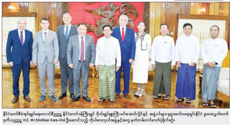 နိုင်ငံတော်စီမံအုပ်ချုပ်ရေးကောင်စီဥက္ကဋ္ဌ နိုင်ငံတော်ဝန်ကြီးချုပ် ဗိုလ်ချုပ်မှူးကြီး မင်းအောင်လှိုင်ထံသို့ ရုရှားဖက်ဒရေးရှင်းနိုင်ငံ ဒူးမားလွှတ်တော် ဒုတိယဥက္ကဋ္ဌ H.E. Mr.Sholban Kara-Ool ဦးဆောင်သည့်အဖွဲ့ဝင်များက ယနေ့ညနေပိုင်းတွင် တောင်ကြီးမြို့ရှိ ပင်လုံရိပ်သာဧည့်ခန်းမဆောင်၌ လာရောက်ဂါရဝပြု တွေ့ဆုံသည်။