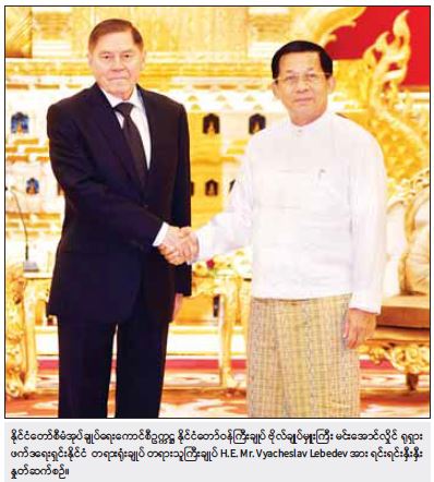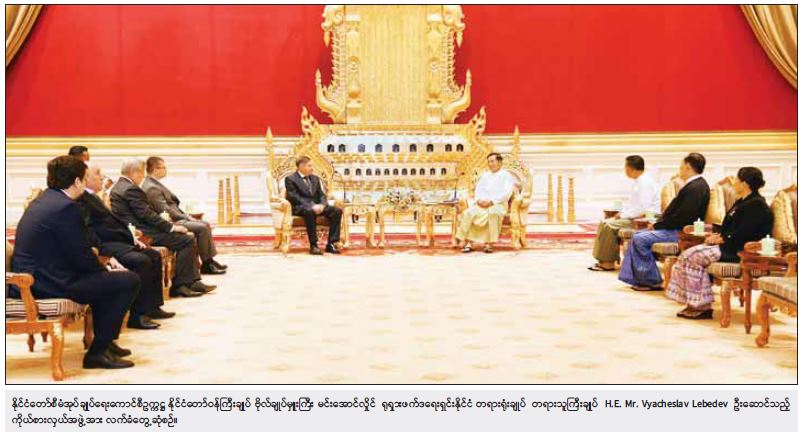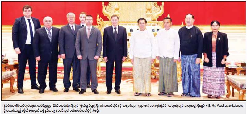 နိုင်ငံတော်စီမံအုပ်ချုပ်ရေးကောင်စီဥက္ကဋ္ဌ နိုင်ငံတော်ဝန်ကြီးချုပ် ဗိုလ်ချုပ်မှူးကြီး မင်းအောင်လှိုင် ရုရှားဖက်ဒေရေးရှင်းနိုင်ငံ၊ တရားရုံးချုပ်၊ တရားသူကြီးချုပ် H.E. Mr. Vyacheslav Lebedev ဦးဆောင်သည့် ကိုယ်စားလှယ်အဖွဲ့အား ယနေ့နံနက်ပိုင်းတွင် နေပြည်တော်ရှိ နိုင်ငံတော်စီမံအုပ်ချုပ်ရေးကောင်စီဥက္ကဋ္ဌရုံး၊ သံတမန်ဆောင်ဧည့်ခန်းမ၌ လက်ခံတွေ့ဆုံသည်။