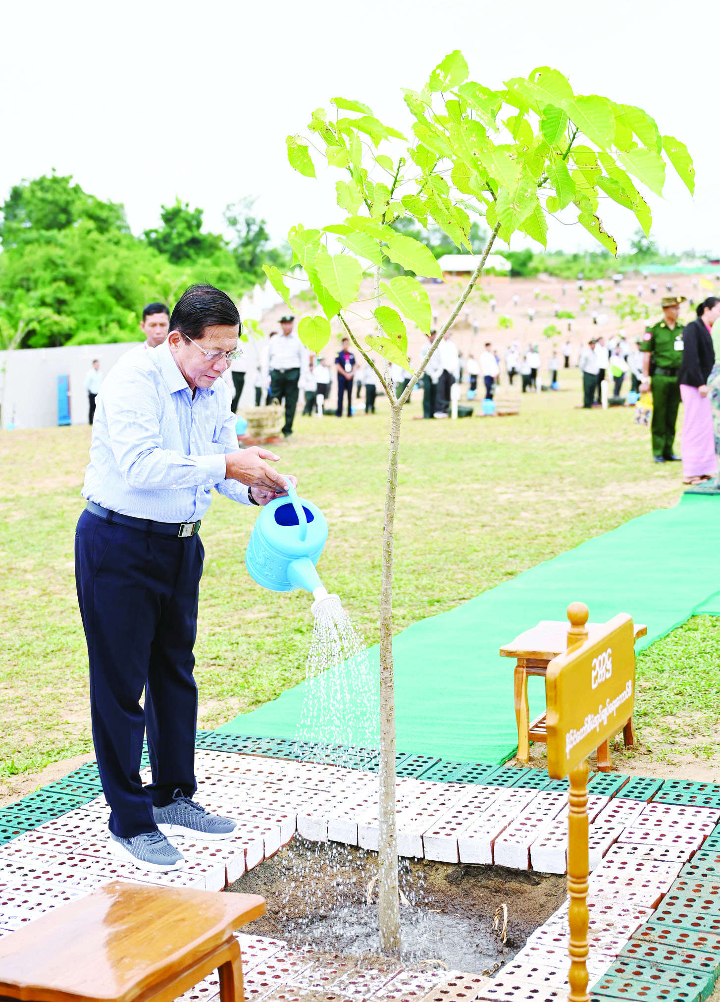 ယင်းနောက် အခမ်းအနားသို့ တက်ရောက်လာ ကြသည့် နိုင်ငံတော်စီမံအုပ်ချုပ်ရေးကောင်စီ ဒုတိယ ဥက္ကဋ္ဌ ဒုတိယဝန်ကြီးချုပ်နှင့်ဇနီး၊ ကောင်စီအတွင်းရေးမှူးနှင့်ဇနီး၊ တွဲဖက်အတွင်းရေးမှူးနှင့်ဇနီး၊ ကောင်စီ အဖွဲ့ဝင်များနှင့်ဇနီးများ၊ ပြည်ထောင်စုအဆင့် ပုဂ္ဂိုလ်များနှင့် ပြည်ထောင်စုဝန်ကြီးများ၊ ဝန်ကြီးဌာနများမှ ဌာနဆိုင်ရာအရာထမ်း၊ အမှုထမ်းများ၊ သစ်တောနှင့် ပတ်ဝန်းကျင်ဆိုင်ရာ တက္ကသိုလ်နှင့် အခြေခံပညာ ကျောင်းများမှ ကျောင်းသား ကျောင်းသူများ၊ တာဝန် ရှိသူများသည် ပျိုးပင်များကို တစ်ပြိုင်တည်း စိုက်ပျိုးပေးကြသည်။