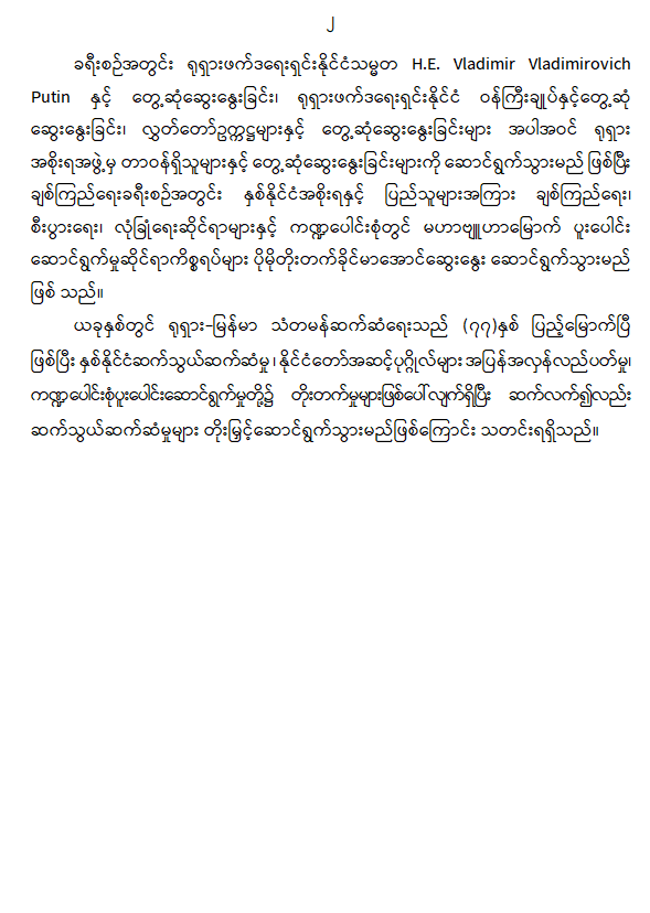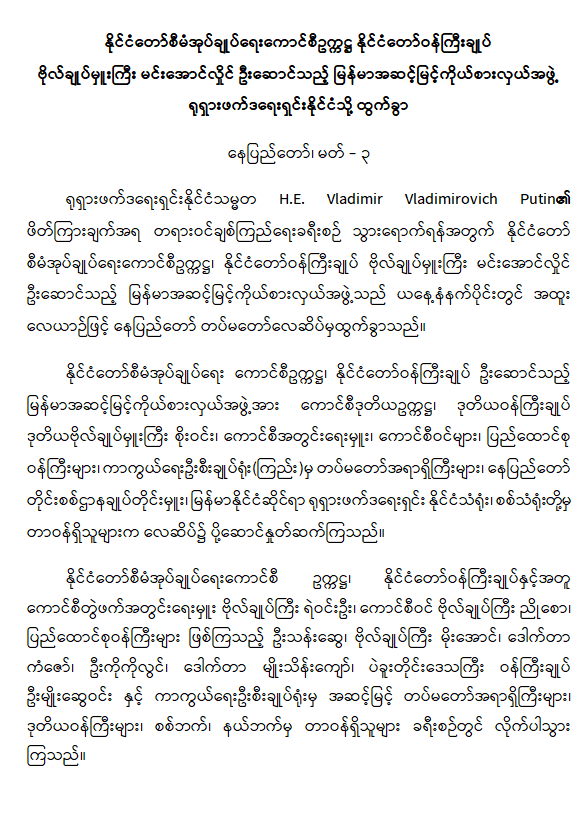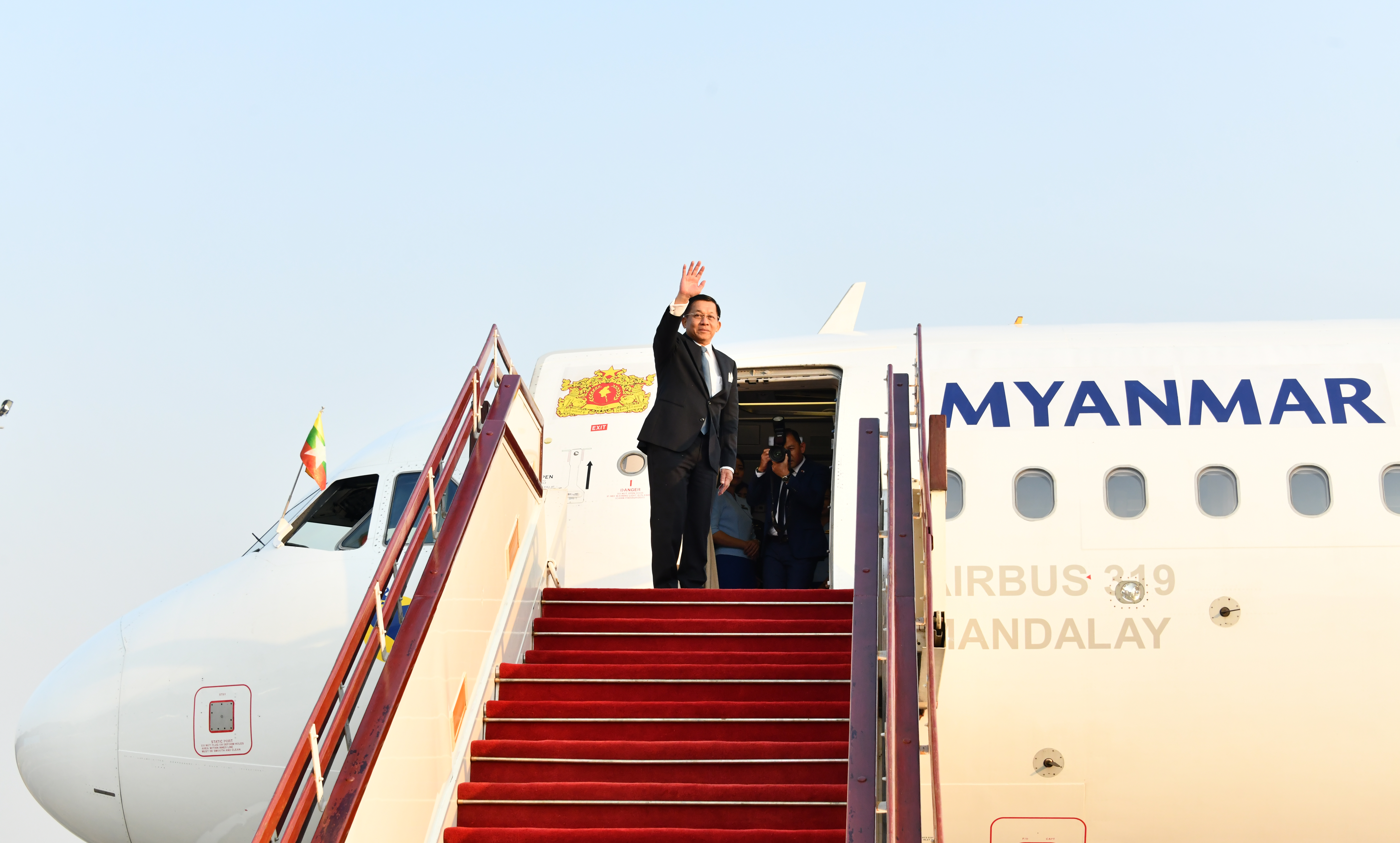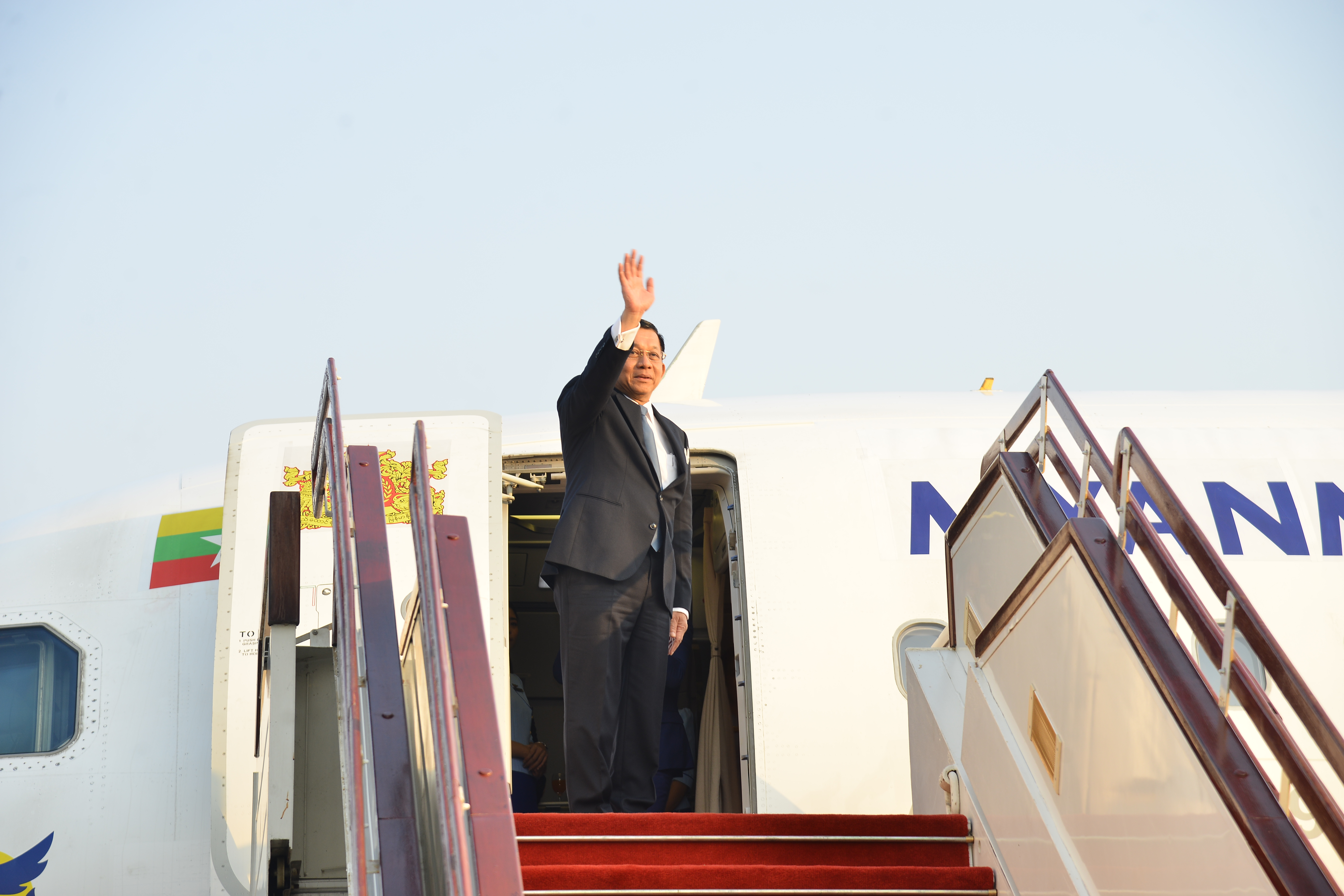 နိုင်ငံတော်စီမံအုပ်ချုပ်ရေးကောင်စီဥက္ကဋ္ဌ နိုင်ငံတော်ဝန်ကြီးချုပ် ဗိုလ်ချုပ်မှူးကြီး မင်းအောင်လှိုင် ဦးဆောင်သည့် မြန်မာအဆင့်မြင့်ကိုယ်စားလှယ်အဖွဲ့ ရုရှားဖက်ဒရေးရှင်းနိုင်ငံသို့ ထွက်ခွာ