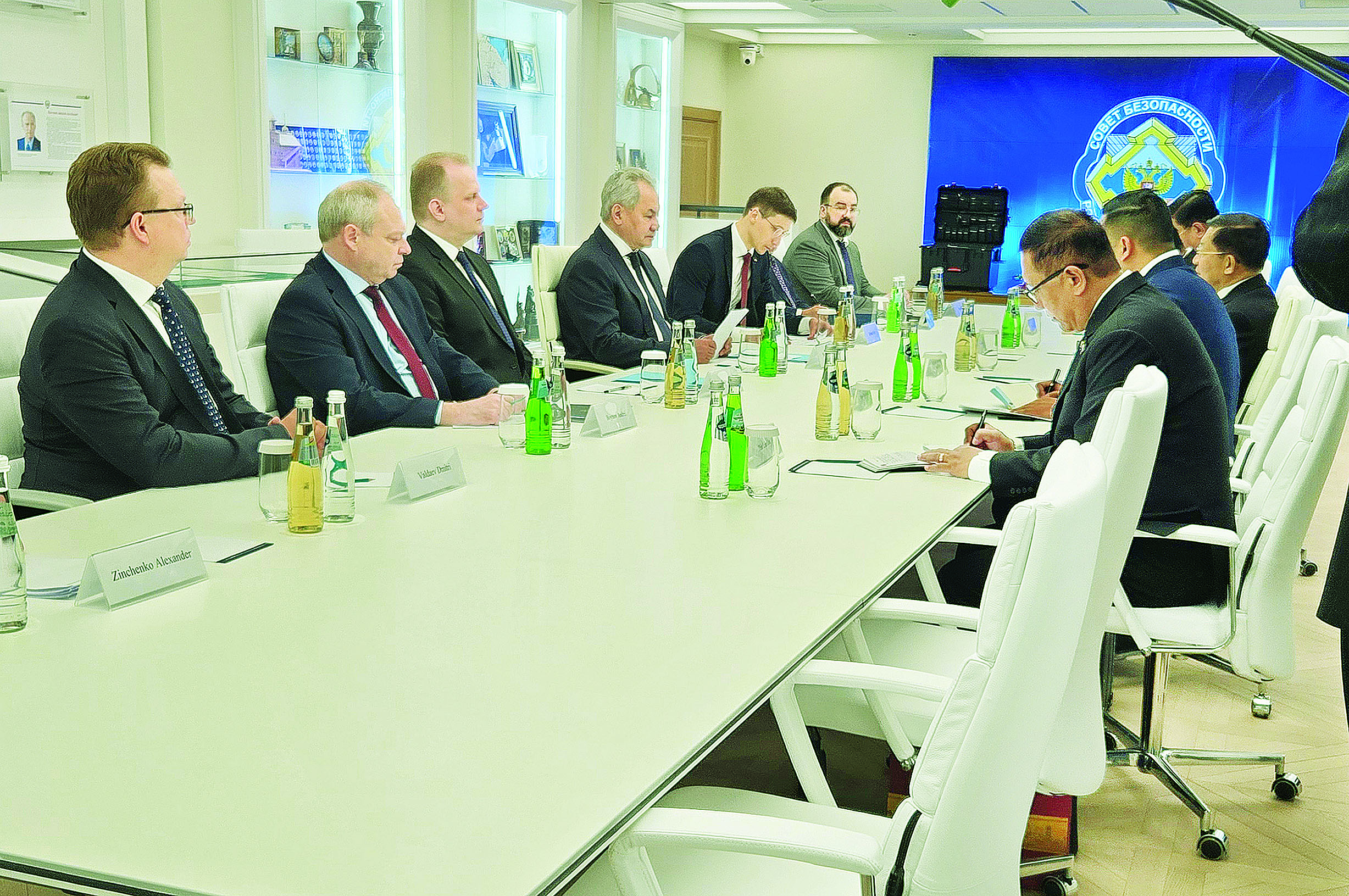 ဦးစွာ နိုင်ငံတော်စီမံအုပ်ချုပ်ရေးကောင်စီ ဥက္ကဋ္ဌနှင့် ချစ်ကြည်ရေးကိုယ်စားလှယ်အဖွဲ့ဝင်များသည် ရုရှားဖက်ဒရေးရှင်းနိုင်ငံ လုံခြုံရေးကောင်စီ အတွင်းရေးမှူးရုံးသို့ ရောက်ရှိကြရာ ရုရှားဖက်ဒရေးရှင်းနိုင်ငံ လုံခြုံရေးကောင်စီ အတွင်းရေးမှူး Mr. Sergey Kuzhugetovich Shoigu က ရင်းရင်းနှီးနှီး ကြိုဆိုနှုတ်ဆက်သည်။