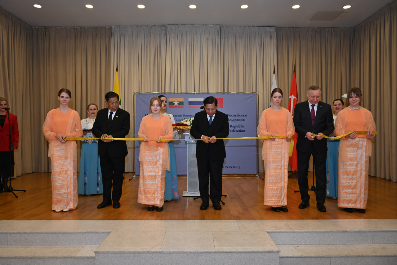 ရုရှားဖက်ဒရေးရှင်းနိုင်ငံ၊ စိန့်ပီတာစဘတ်မြို့၊ ကောင်စစ်ဝန်ချုပ်ရုံးဖွင့်ပွဲ အခမ်းအနားကို မတ်လ ၅ ရက်နေ့ ဒေသစံတော်ချိန်ညနေပိုင်းတွင် စိန့်ပီတာစဘတ် အစိုးရဧည့်ဂေဟာ K2 ၌ ကျင်းပပြုလုပ်ရာ ရုရှားနိုင်ငံသို့ တရားဝင်ချစ်ကြည်ရေးခရီး ရောက်ရှိနေသည့် နိုင်ငံတော်စီမံအုပ်ချုပ်ရေး ကောင်စီဥက္ကဋ္ဌ နိုင်ငံတော်ဝန်ကြီးချုပ် ဗိုလ်ချုပ်မှူးကြီးမင်းအောင်လှိုင် တက်ရောက် ဖွင့်လှစ်ပေးသည်။