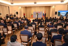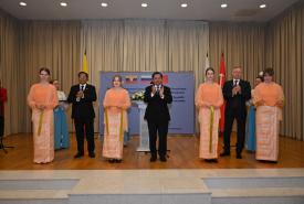 ဦးစွာ ပြည်ထောင်စုသမ္မတ မြန်မာနိုင်ငံတော် နိုင်ငံတော်သီချင်းနှင့် ရုရှားဖက်ဒရေးရှင်းနိုင်ငံ နိုင်ငံတော်သီချင်းတို့အား ဖွင့်လှစ်၍ အလေးပြုကြသည်။