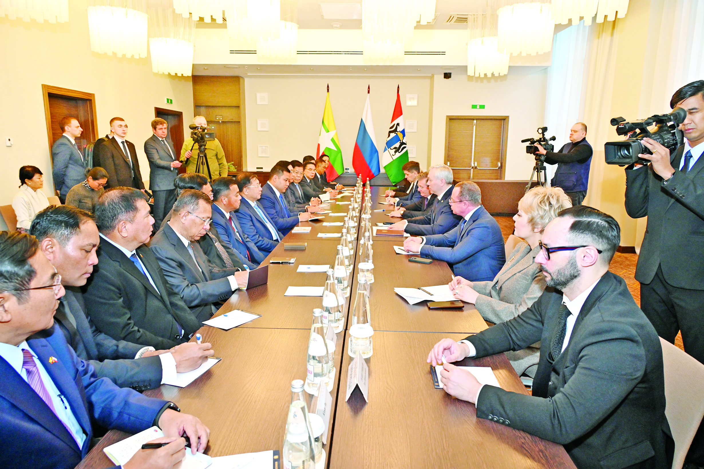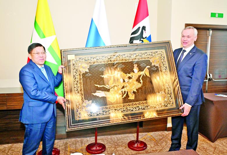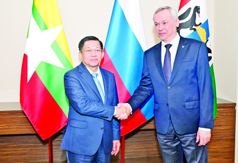ရုရှားဖက်ဒရေးရှင်းနိုင်ငံ၊ နိုဗိုစီဗစ်မြို့၌ တရားဝင်ချစ်ကြည်ရေးခရီး ရောက်ရှိနေသည့် နိုင်ငံတော် စီမံအုပ်ချုပ်ရေးကောင်စီ ဥက္ကဋ္ဌ နိုင်ငံတော်ဝန်ကြီးချုပ် ဗိုလ်ချုပ်မှူးကြီး မင်းအောင်လှိုင်သည် နိုဗိုစီဗစ်ဒေသ အုပ်ချုပ်ရေးမှူး မစ္စတာ တရာ့ဗနီကော့ဗ်အန်ဒရေ အလက်ဇန်ဒရိုဘစ်ချ်နှင့် ယနေ့ဒေသစံတော်ချိန် နံနက်ပိုင်းတွင် နိုဗိုစီဗစ်မြို့၊ Grand Autograph ဟိုတယ်ရှိ အစည်းအဝေး ခန်းမ၌ တွေ့ဆုံ ဆွေးနွေးသည်။