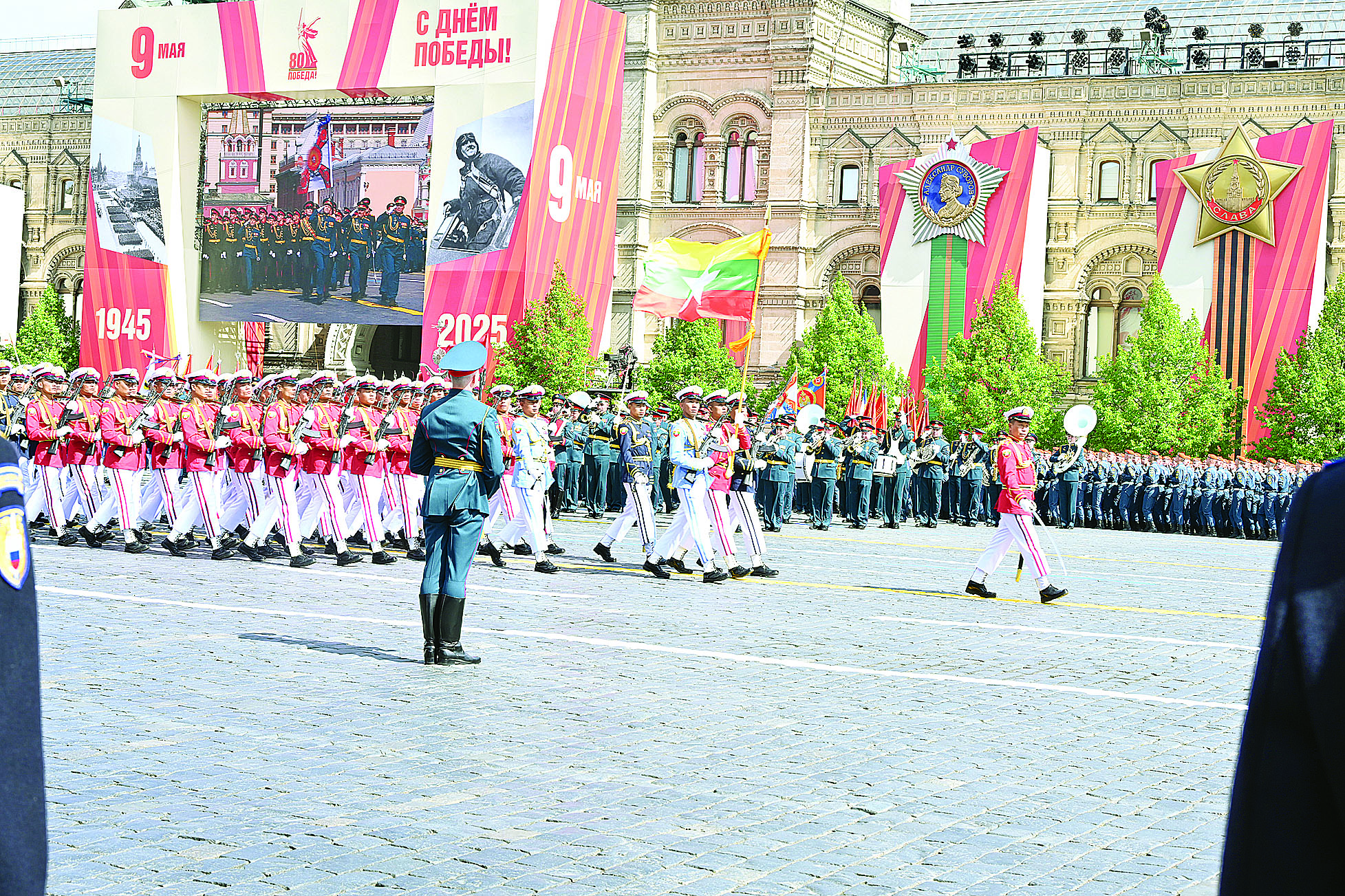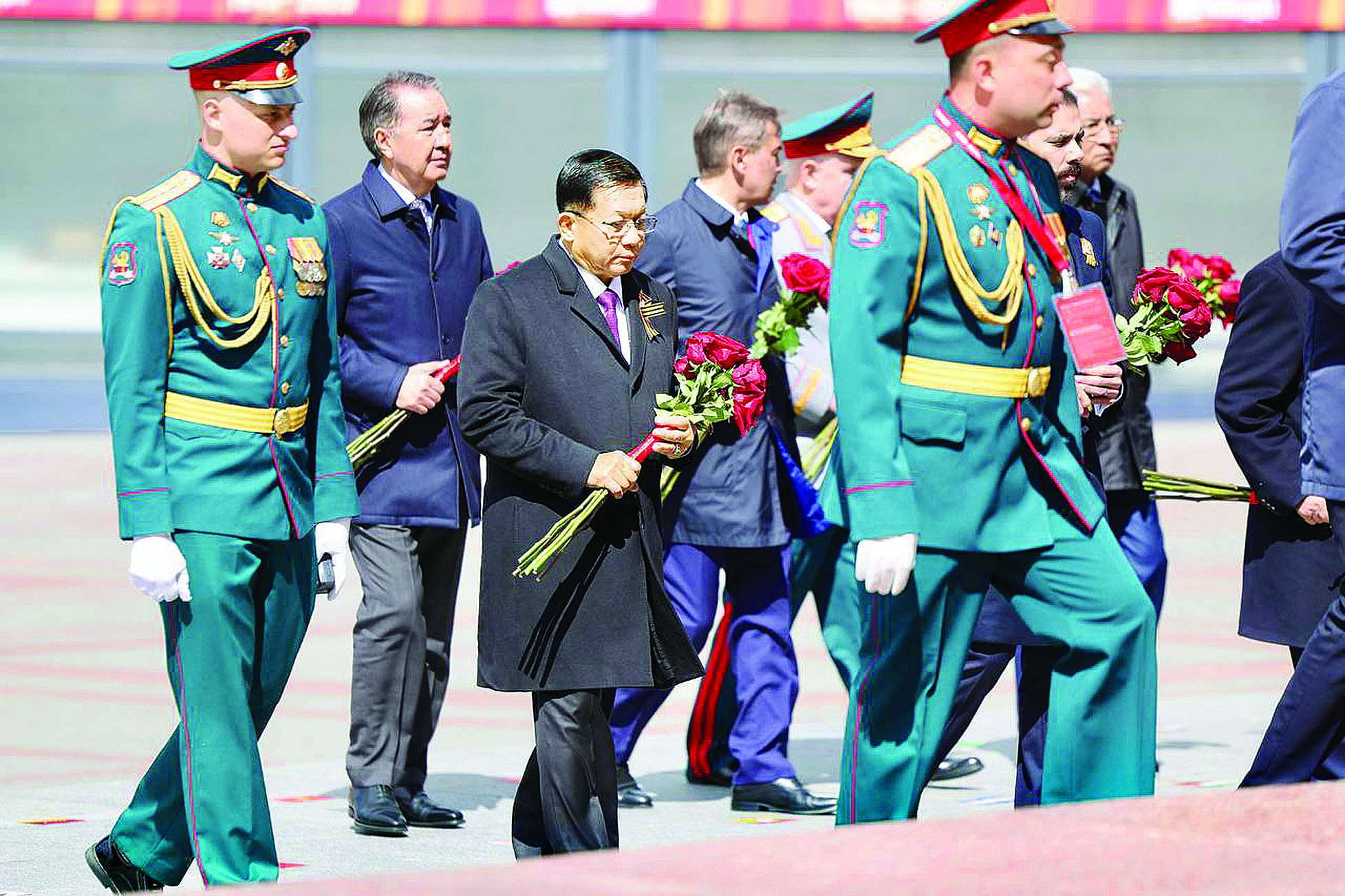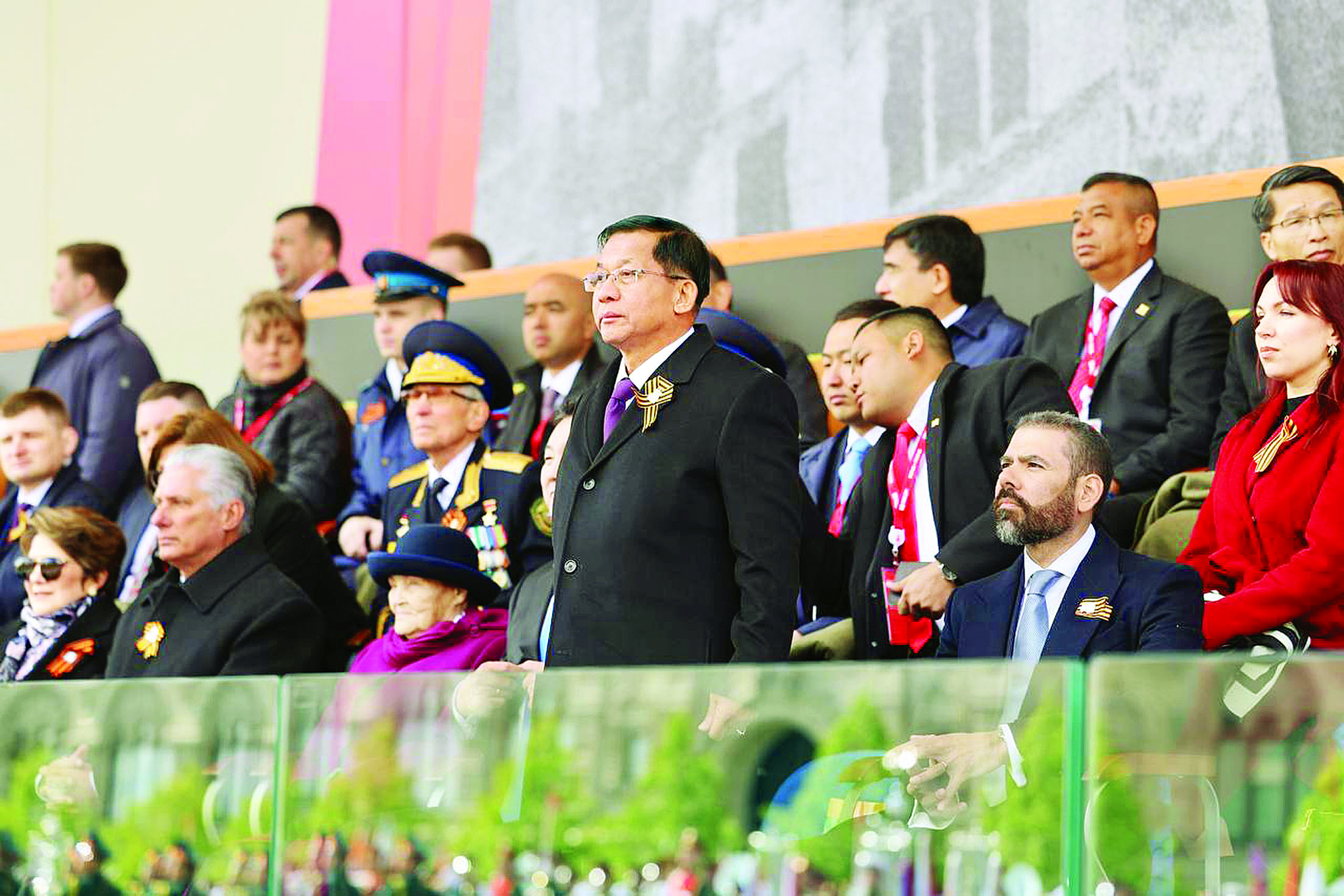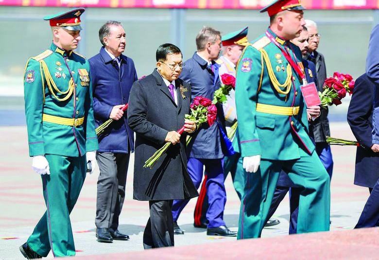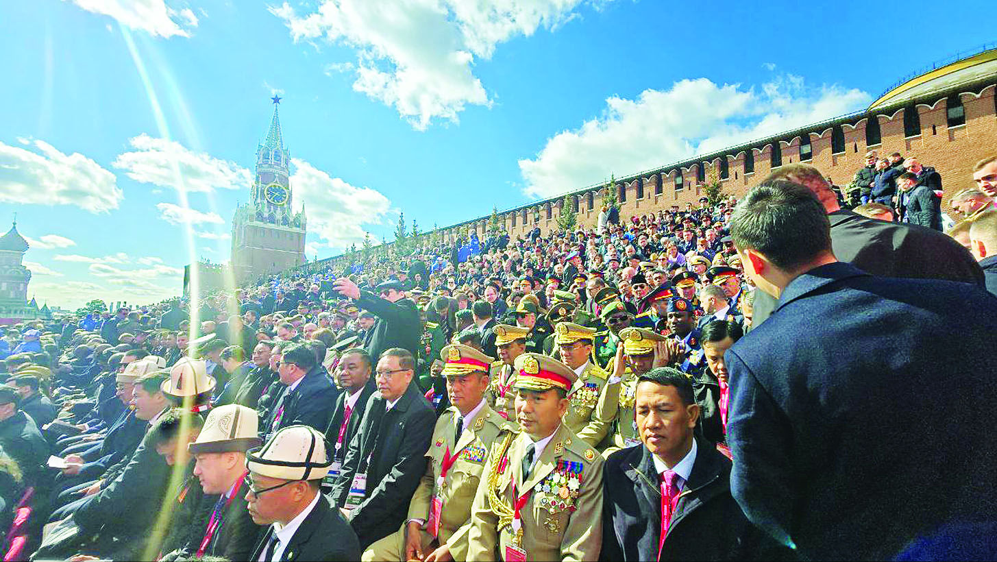 ရုရှားဖက်ဒရေးရှင်းနိုင်ငံ၌ ကျင်းပပြုလုပ်သည့် ၁၉၄၁ - ၁၉၄၅ မဟာမျိုးချစ် စစ်ပွဲကြီးအောင်ပွဲ နှစ် (၈၀) ပြည့် အထိမ်းအမှတ် စစ်ရေးပြအခမ်းအနားကို ယနေ့နံနက်ပိုင်းတွင် မော်စကိုမြို့ရင်ပြင်နီ၌ ကျင်းပပြုလုပ်ရာ နိုင်ငံတော်စီမံအုပ်ချုပ်ရေး ကောင်စီဥက္ကဋ္ဌ နိုင်ငံတော်ဝန်ကြီးချုပ် ဗိုလ်ချုပ်မှူးကြီး မင်းအောင်လှိုင်သည် နိုင်ငံတကာမှ အကြီးအကဲများ၊ တာဝန်ရှိသူများနှင့်အတူ တက်ရောက်သည်။