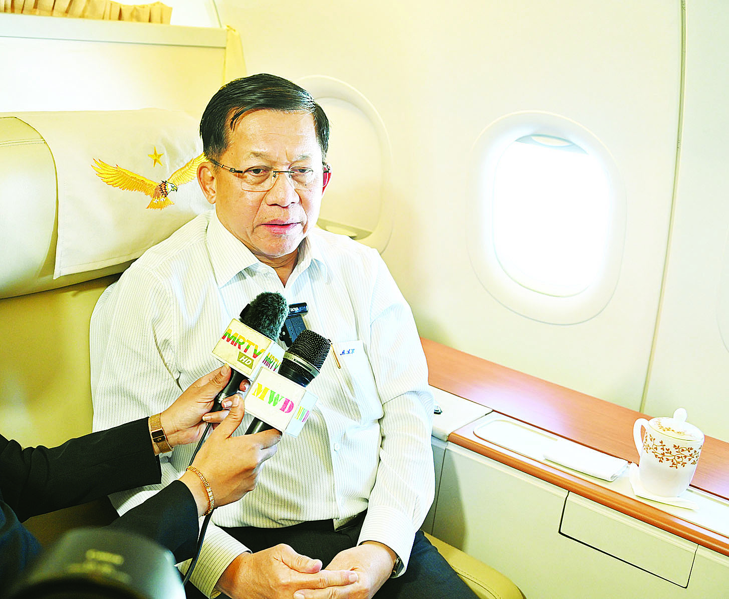 ထိုသို့အထူးလေယာဉ်ဖြင့် ပြန်လည်ထွက်ခွာလာစဉ် အထူးလေယာဉ်ပေါ်၌ နိုင်ငံတော် စီမံအုပ်ချုပ်ရေးကောင်စီဥက္ကဋ္ဌ နိုင်ငံတော်ဝန်ကြီးချုပ်သည် မီဒီယာများ၏ သိရှိလိုသည့် မေးမြန်းမှုများကို လက်ခံဖြေကြားခဲ့ပြီး မေးမြန်းဖြေကြားမှု အပြည့်အစုံကို ဖော်ပြလိုက်ရပါသည်။