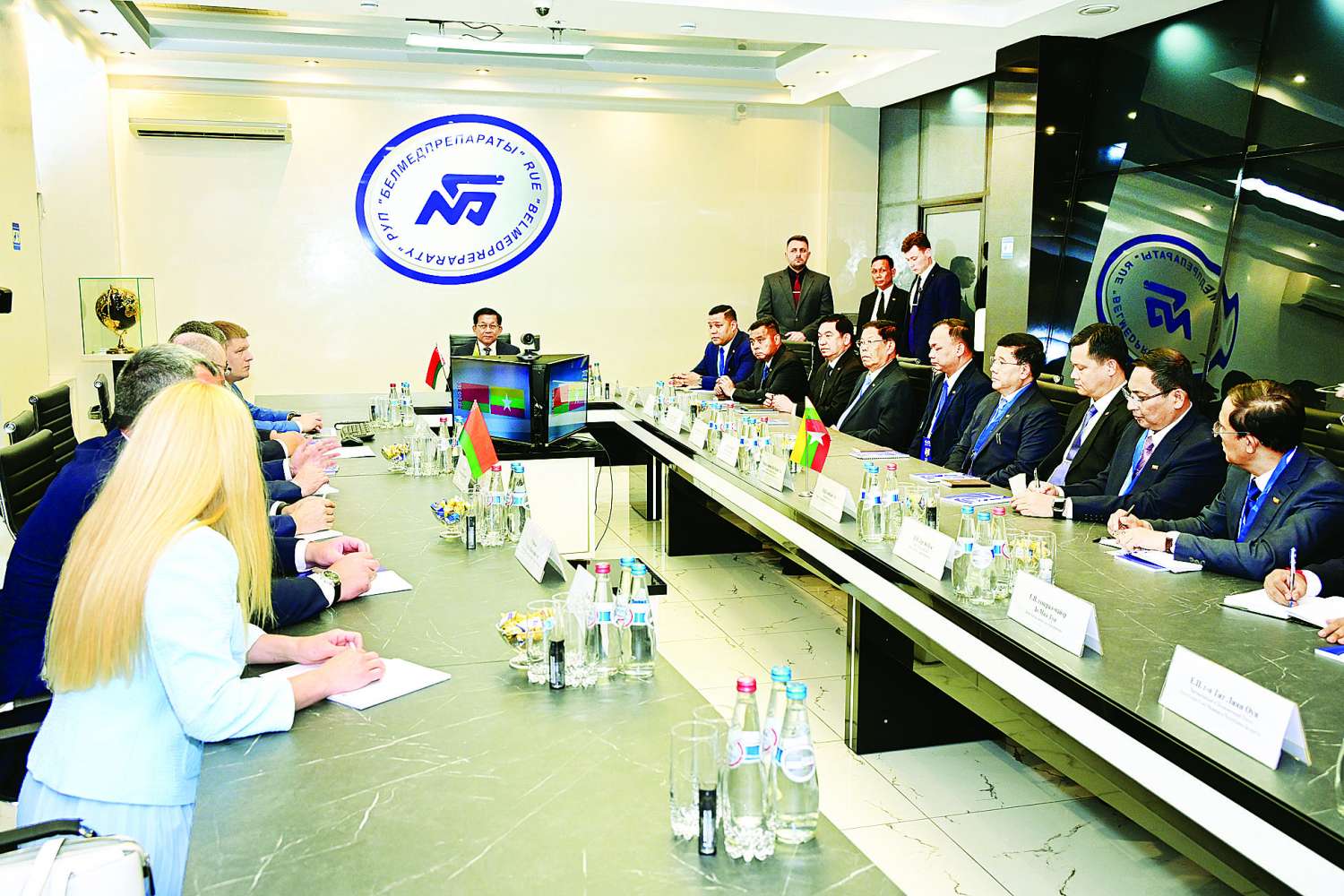 ယင်းနောက် နိုင်ငံတော်စီမံအုပ်ချုပ်ရေးကောင်စီဥက္ကဋ္ဌ နိုင်ငံတော်ဝန်ကြီးချုပ်နှင့် အဖွဲ့ဝင်များ၊ ဘယ်လာရုစ် သမ္မတနိုင်ငံ၊ ကျန်းမာရေးဝန်ကြီးဌာနဝန်ကြီးနှင့် အဖွဲ့ဝင်များသည် ဆေးဝါးစက်ရုံအစည်းအဝေးခန်းမအတွင်း တွေ့ဆုံ၍ နှစ်နိုင်ငံအကြား ကျန်းမာရေးကဏ္ဍတွင် ပူးပေါင်းဆောင်ရွက်နိုင်မည့် အခြေအနေများ၊ ဘယ်လာရုစ်နိုင်ငံမှ ထုတ်လုပ်သည့် ဆေးနှင့် ဆေးပစ္စည်းဆိုင်ရာများအား မြန်မာနိုင်ငံကျန်းမာရေးကဏ္ဍတွင် အသုံးပြုသွားနိုင်မည့် အခြေအနေများ၊ Belmedpreparaty ဆေးဝါးစက်ရုံမှ တာဝန်ရှိသူများနှင့် မြန်မာနိုင်ငံမှ ကျန်းမာရေးဆိုင်ရာတာဝန်ရှိသူတို့ အသေးစိတ်ဆက်လက်ဆွေးနွေးဆောင်ရွက်သွားမည့် အခြေအနေများနှင့် ပတ်သက်၍ အမြင်ချင်းဖလှယ်ဆွေးနွေးခဲ့ကြသည်။