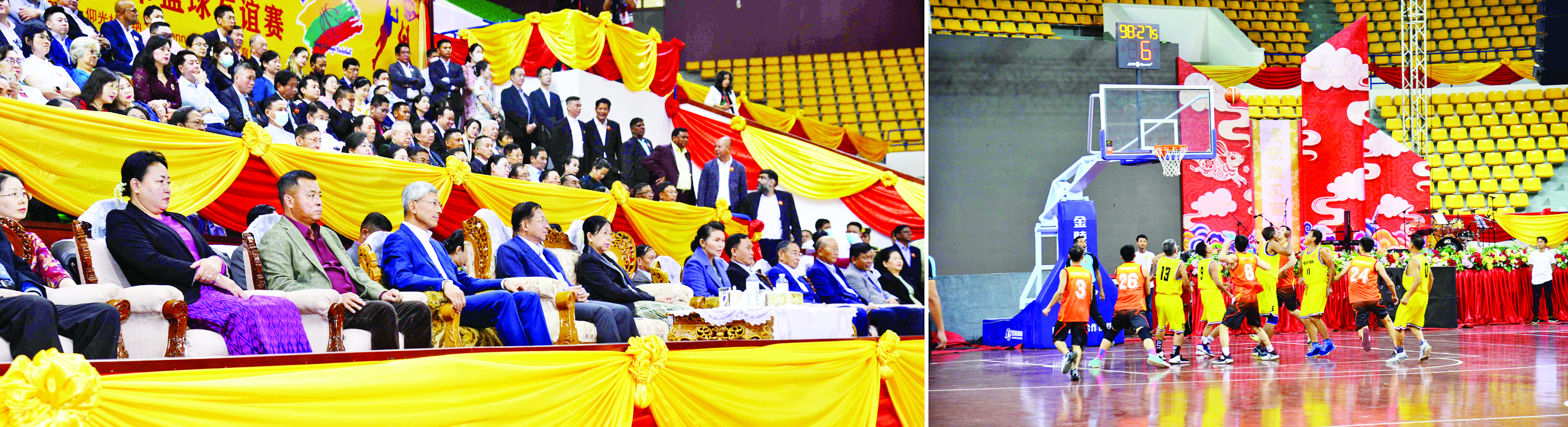 ယင်းနောက် ချစ်ကြည်ရေးဘတ်စကက်ဘော ပြိုင်ပွဲအဖြစ် မြန်မာနိုင်ငံဆိုင်ရာ တရုတ်ပြည်သူ့ သမ္မတနိုင်ငံသံရုံးအသင်းနှင့် လူငယ်ဘတ်စကက်ဘောအသင်းတို့က ပထမပွဲစဉ်အဖြစ်လည်းကောင်း၊ ဒုတိယပွဲစဉ်အဖြစ် မြန်မာနိုင်ငံဆိုင်ရာ တရုတ် ပြည်သူ့သမ္မတနိုင်ငံ သံရုံးအသင်းနှင့် မြန်မာနိုင်ငံ ဘတ်စကက်ဘောအားကစားသမား ဟောင်းကြီးများအသင်းတို့က ဒုတိယပွဲစဉ်အဖြစ်လည်းကောင်း အသီးသီးယှဉ်ပြိုင်ကစားကြရာ နိုင်ငံတော်စီမံအုပ်ချုပ်ရေးကောင်စီဥက္ကဋ္ဌ နိုင်ငံတော်ဝန်ကြီးချုပ်နှင့်ဇနီး၊ အခမ်းအနား တက်ရောက်လာကြသူများက ကြည့်ရှုအားပေးကြသည်။