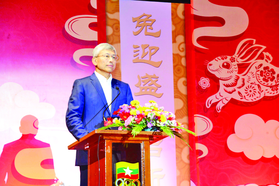 မြန်မာနိုင်ငံသည် တရုတ်ပြည်သူ့သမ္မတနိုင်ငံနှင့် တရုတ်လူမျိုးများ၊ တရုတ်နွယ်ဖွား မြန်မာနိုင်ငံသားများအတွက် မျက်နှာနှစ်ဖက် ဆက်ဆံရေးမျိုး မရှိသည့် ယုံကြည်စိတ်ချရသည့် အိမ်နီးချင်းနိုင်ငံတစ်ခု ဖြစ်ပါကြောင်း၊ တရုတ်နိုင်ငံသည်လည်း မြန်မာနိုင်ငံအတွက် အရေးကြီးသည့် အိမ်နီးချင်းနိုင်ငံတစ်ခု ဖြစ်သကဲ့သို့ ဘက်စုံမဟာဗျူဟာမြောက် ပူးပေါင်း ဆောင်ရွက်ရေး မိတ်ဖက်နိုင်ငံတစ်ခုလည်း ဖြစ်ပါကြောင်း၊ ယခုကဲ့သို့ မင်္ဂလာရှိသည့် တရုတ်နှစ်သစ်ကူးနေ့တွင် ယုန်နှစ်ဖြစ်သည့်အလျောက် မိမိတို့အားလုံး ပိုမို၍ချစ်ခင်ကြပါစေ၊ ငြိမ်းချမ်းမှုနှင့် သာယာဝပြောမှု ပိုမိုရရှိကြပါစေ၊ မြန်မာနိုင်ငံအတွင်း မှီတင်းနေထိုင် ကြသည့် တရုတ်နွယ်ဖွားမြန်မာနိုင်ငံသားများ၊ တရုတ်ပြည်သူ့သမ္မတနိုင်ငံအတွင်းရှိ တရုတ်နိုင်ငံ သားများ၊ ကမ္ဘာအနှံ့ မှီတင်းနေထိုင်ကြသည့် တရုတ်နွယ်ဖွားများအားလုံး နှစ်သစ်ကူးပွဲတော်၌ ပျော်ရွှင် ပါစေ၊ မင်္ဂလာအပေါင်းနှင့် ခညောင်းပါစေ၊ စီးပွားလာဘ်လာဘများ တိုးပွားပါစေ၊ အစစအရာရာ အဆင်ပြေချောမွေ့ပြီး ကံကောင်းခြင်းများ ပွင့်လန်းပါစေ၊ ကျန်းမာဘေးကင်းပါစေ၊ လိုအင်ဆန္ဒများ ပြည့်ဝပါစေကြောင်းဖြင့် ပြောကြားသည်။