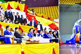 ဦးစွာ နိုင်ငံတော်စီမံအုပ်ချုပ်ရေးကောင်စီဥက္ကဋ္ဌ နိုင်ငံတော်ဝန်ကြီးချုပ်နှင့် ဇနီးတို့အား မြန်မာနိုင်ငံဆိုင်ရာ တရုတ်နိုင်ငံသံအမတ်ကြီး H.E. Mr. Chen Hai၊ မြန်မာနိုင်ငံ တရုတ်ကုန်သည်များအသင်းချုပ်ဥက္ကဋ္ဌ ဦးအိုင်ထွန်း၊ မြန်မာနိုင်ငံ ဘတ်စကက်ဘောအဖွဲ့ချုပ် ဥက္ကဋ္ဌနှင့် တာဝန်ရှိသူများက လှိုက်လှဲနွေးထွေးစွာ ကြိုဆိုနှုတ်ဆက်ကြသည်။ ထို့နောက် (၂၀၂၃) ခုနှစ် တရုတ်နှစ်သစ်ကူးပွဲတော်အထိမ်းအမှတ် ချစ်ကြည်ရေး ဘတ်စကက်ဘောပြိုင်ပွဲ ပိတ်ပွဲအခမ်းအနားကို စတင်ကျင်းပပြုလုပ်ရာ ပြိုင်ပွဲဝင်အသင်းများမှ အားကစားသမားများ၊ တရုတ်ရိုးရာ နဂါးအကအဖွဲ့များနှင့် ခြင်္သေ့အကအဖွဲ့များ၊ ဘင်ခရာအဖွဲ့များ၊ ပန်းပွားအက အဖွဲ့များက နိုင်ငံတော်စီမံအုပ်ချုပ်ရေးကောင်စီဥက္ကဋ္ဌ နိုင်ငံတော်ဝန်ကြီးချုပ်အား ဘင်ခရာ တီးမှုတ်၍ အလေးပြုကြသည်။