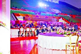 (၂၀၂၃) ခုနှစ် တရုတ်နှစ်သစ်ကူးပွဲတော်အထိမ်းအမှတ် ချစ်ကြည်ရေး ဘတ်စကက်ဘောပြိုင်ပွဲ ပိတ်ပွဲနှင့် တရုတ်နှစ်သစ်ကူးပွဲတော်အခမ်းအနားကို ယနေ့ညနေပိုင်းတွင် ရန်ကုန်မြို့ရှိ အမျိုးသားအားကစားပြိုင်ပွဲရုံ (၁)  သုဝဏ္ဏ၌ ကျင်းပပြုလုပ်ရာ နိုင်ငံတော်စီမံအုပ်ချုပ်ရေးကောင်စီဥက္ကဋ္ဌ နိုင်ငံတော်ဝန်ကြီးချုပ် ဗိုလ်ချုပ်မှူးကြီး မင်းအောင်လှိုင်နှင့် ဇနီးဒေါ်ကြူကြူလှတို့ တက်ရောက်ချီးမြှင့်သည်။