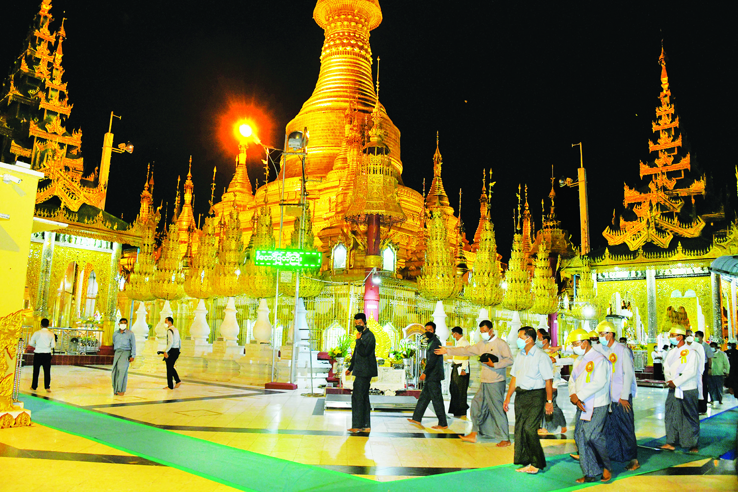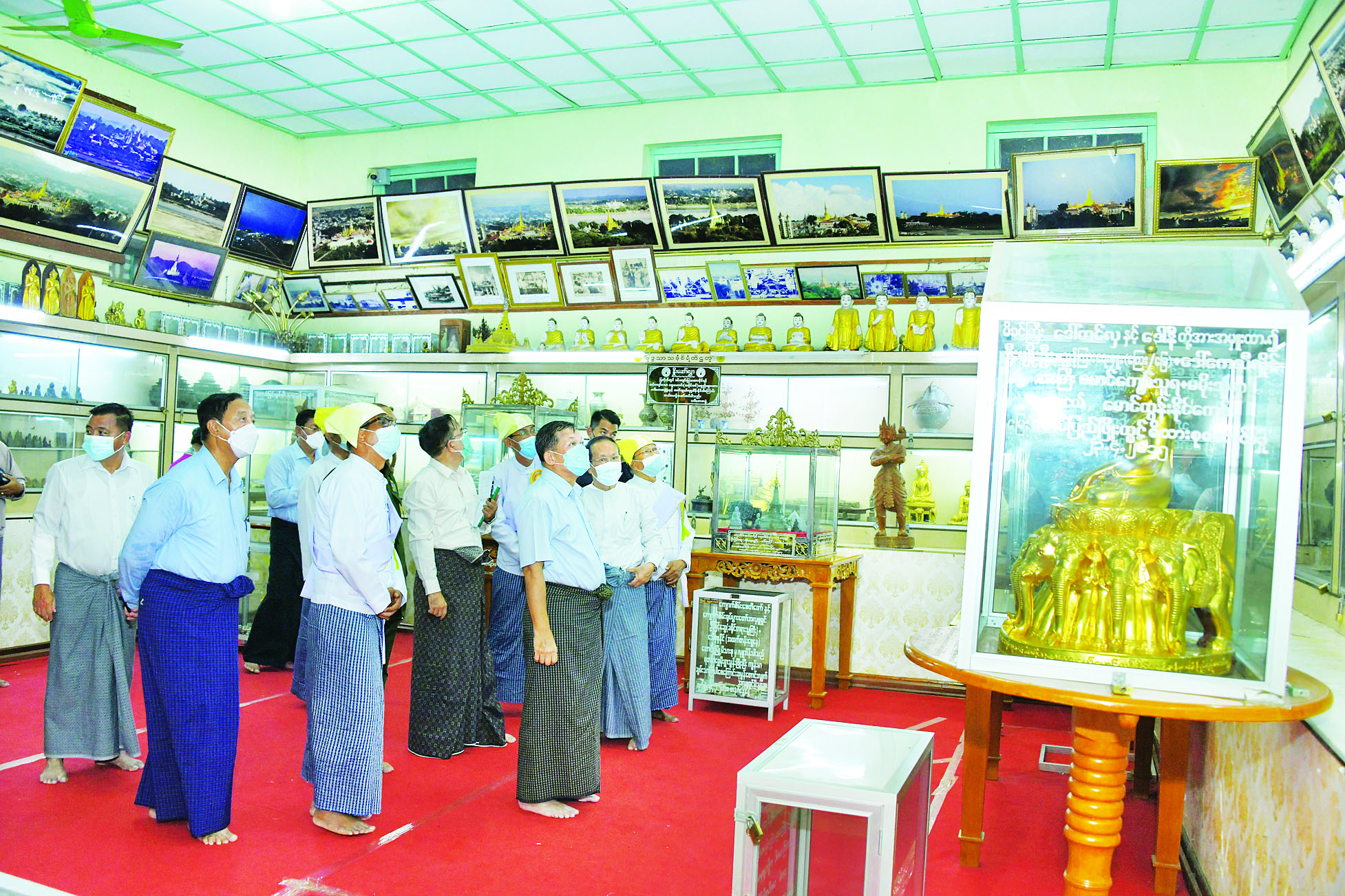 ဦးစွာ နိုင်ငံတော်စီမံအုပ်ချုပ်ရေးကောင်စီဥက္ကဋ္ဌ နိုင်ငံတော်ဝန်ကြီးချုပ်နှင့် အဖွဲ့ဝင်များသည် ရွှေဆံတော်စေတီတော်မြတ်ကြီးသို့ ရောက်ရှိကြရာ ဂေါပကအဖွဲ့ဝင် ဦးစိုးဝင်းနှင့် အဖွဲ့ဝင်များက ကြိုဆိုနှုတ်ဆက်ကြသည်။ ထို့နောက် စေတီတော်ကြီးရှိ နှီးဘုရားဗုဒ္ဓရုပ်ပွားတော်မြတ်အား ဖူးမြော်ကြည်ညိုကာ ပန်း၊ ရေချမ်း၊ ဆီမီး ကပ်လှူပူဇော်သည်။ ယင်းနောက် စေတီတော်ကြီးသမိုင်းပြတိုက်အတွင်း လှည့်လည်ကြည့်ရှုပြီး သမိုင်းမှတ်တမ်းများအား စနစ်တကျ ထိန်းသိမ်းရန်နှင့် ပြတိုက်အား ပြန်လည်မွမ်းမံရန် လိုအပ်သည့်အခြေအနေများနှင့် ပတ်သက်၍ တာဝန်ရှိသူများအား မှာကြားသည်။