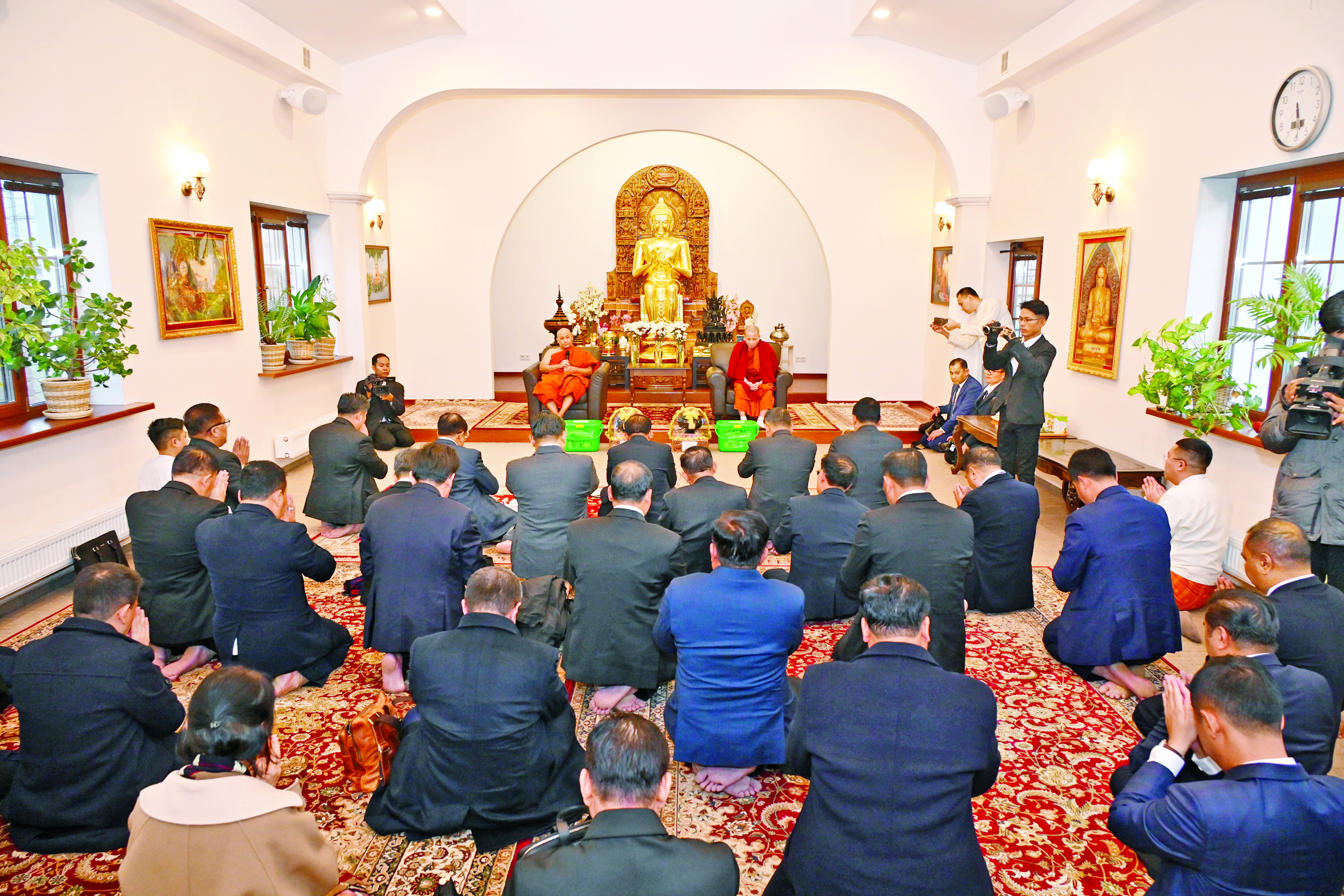 ဦးစွာ နိုင်ငံတော်စီမံအုပ်ချုပ်ရေးကောင်စီဥက္ကဋ္ဌ နိုင်ငံတော်ဝန်ကြီးချုပ်နှင့် ချစ်ကြည်ရေး ကိုယ်စားလှယ်အဖွဲ့ဝင်များသည် မော်စကိုမြို့ မြန်မာထေရဝါဒဗုဒ္ဓစင်တာသို့ ရောက်ရှိကြပြီး သဒ္ဓမ္မဇောတိက သိမ်တော်အတွင်း၌ ကျောင်းထိုင်ဆရာတော် မဟာသဒ္ဓမ္မဇောတိကဓဇ ဒေါက်တာ ဘဒ္ဒန္တအစ္ဆရိယအား ဖူးမြော်ကြည်ညို၍ သာသနာရေးဆိုင်ရာကိစ္စရပ်များ၊ သီတင်းသုံးနေထိုင်ရမှုနှင့် သွားလာရေးအခြေအနေများ၊ ထေရဝါဒဗုဒ္ဓစင်တာအတွက် လိုအပ်ချက်များ၊ ရုရှားနိုင်ငံတွင် ထေရဝါဒဗုဒ္ဓသာသနာ ပြန့်ပွားရေးနှင့် ပတ်သက်၍ သာသနာပြုလုပ်ငန်းများ ဆောင်ရွက်နေမှု အခြေအနေများနှင့် ပတ်သက်၍ မေးမြန်းလျှောက်ထားပြီး လိုအပ်ချက်များကို ဖြည့်ဆည်း ဆောင်ရွက်ပေးသည်။