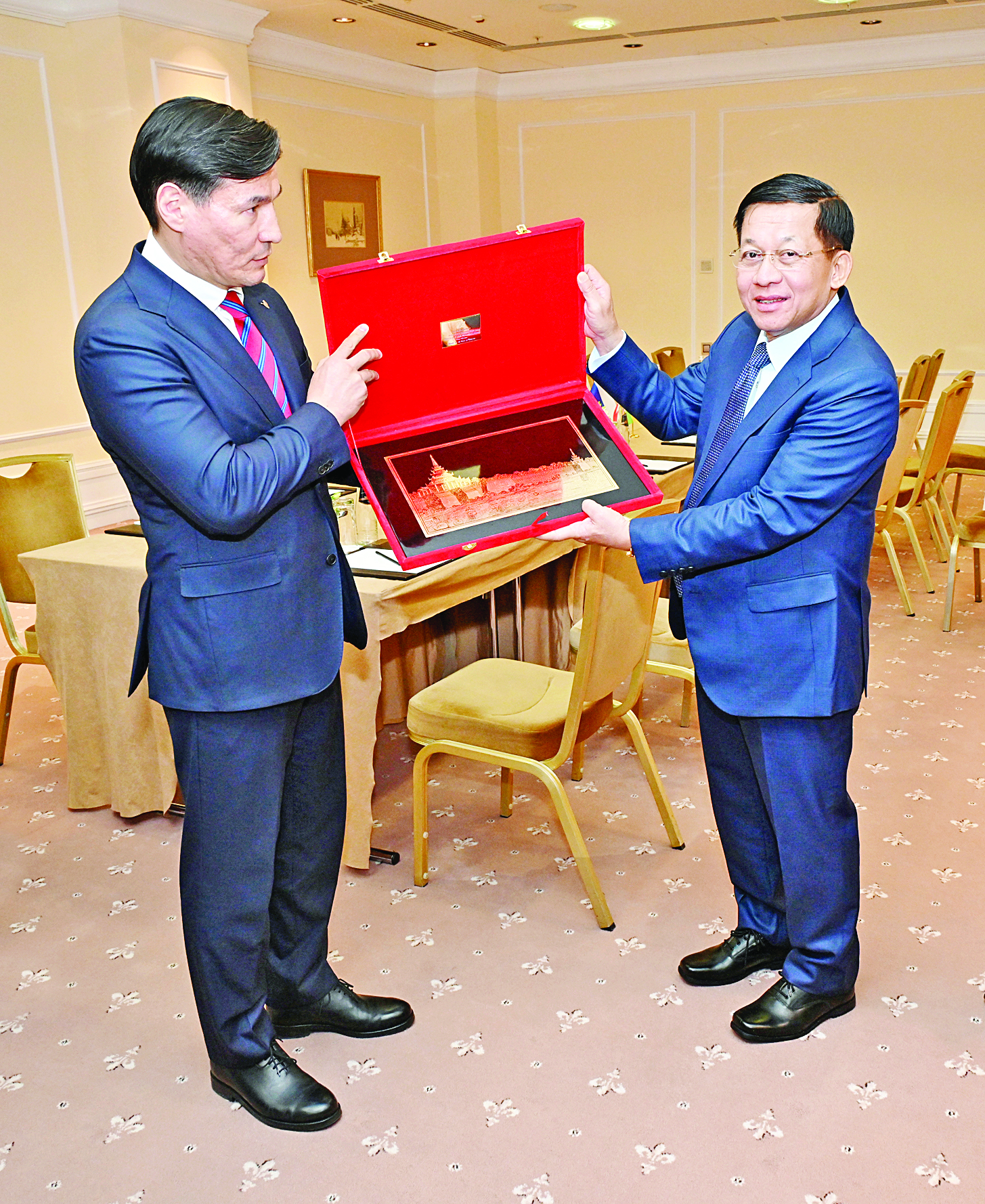 ယင်းနောက် နိုင်ငံတော်စီမံအုပ်ချုပ်ရေးကောင်စီဥက္ကဋ္ဌ နိုင်ငံတော်ဝန်ကြီးချုပ်ထံ ရုရှားဖက်ဒရေးရှင်းနိုင်ငံ ကာမီးကီယာ ပြည်နယ်အကြီးအကဲ H.E.Mr. Batu KHASIKOV နှင့်အဖွဲ့ဝင်များက လာရောက်ဂါရဝပြုတွေ့ဆုံနှုတ်ဆက်၍ ကာမီးကီယာပြည်နယ်ရှိ ဗုဒ္ဓဥယျာဉ်အတွင်း မြန်မာနိုင်ငံမှစေတီတော် (သို့မဟုတ်) ဗုဒ္ဓရုပ်ပွားတော် လာရောက်တည်ထားကိုးကွယ်စေလိုမှု၊ မြန်မာနိုင်ငံမှ လေ့လာရေးကိုယ်စားလှယ်အဖွဲ့အား ကာမီးကီယာပြည်နယ်သို့ လာရောက်လေ့လာစေလိုမှုများနှင့် ပတ်သက်၍ ရင်းရင်းနှီးနှီးဆွေးနွေးခဲ့ကြသည်။