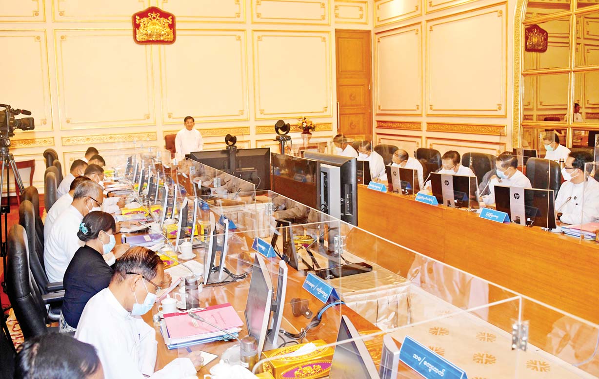 ထို့နောက် အစည်းအဝေးသို့ တက်ရောက်လာကြသည့် ပြည်ထောင်စုဝန်ကြီးများက သက်ဆိုင်ရာကဏ္ဍအလိုက် ရှင်းလင်းတင်ပြရာ နိုင်ငံတော်စီမံအုပ်ချုပ်ရေးကောင်စီဥက္ကဋ္ဌ နိုင်ငံတော်ဝန်ကြီးချုပ်က လိုအပ်သည်များ လမ်းညွှန်မှာကြားခဲ့ကြောင်း သတင်းရရှိသည်။
