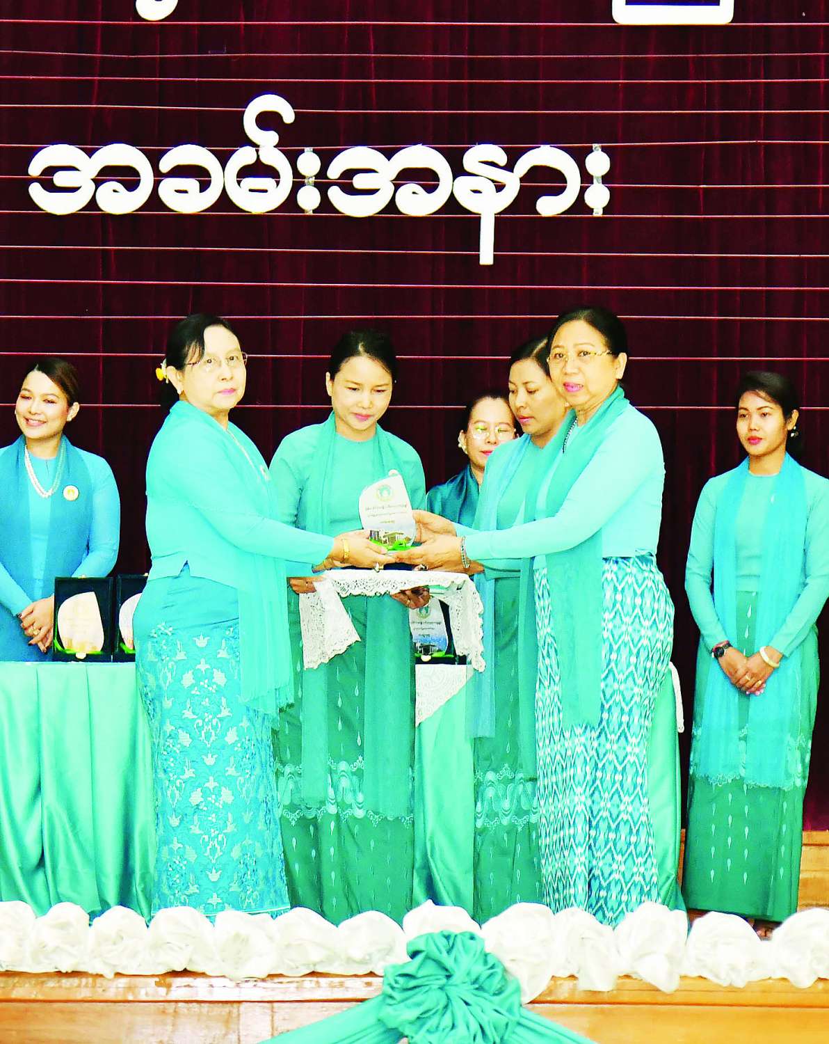 ယင်းနောက် နိုင်ငံတော်စီမံအုပ်ချုပ်ရေးကောင်စီဥက္ကဋ္ဌ နိုင်ငံတော်ဝန်ကြီးချုပ်၏ ဇနီး မြန်မာနိုင်ငံ အမျိုးသမီးရေးရာအဖွဲ့ချုပ် ဂုဏ်ထူးဆောင်နာယက ဒေါ်ကြူကြူလှက မြန်မာနိုင်ငံ အမျိုးသမီးရေးရာအဖွဲ့ချုပ်၏ အမျိုးသမီးများ ဖွံ့ဖြိုးတိုးတက်ရေးဆိုင်ရာ လုပ်ငန်းဆောင်ရွက်မှုအပေါ် ချီးမြှင့်သည့် စွမ်းဆောင်မှုနှင့်လွှမ်းခြုံမှုအကောင်းဆုံး ပထမဆုရရှိသည့် ရန်ကုန်တိုင်းဒေသကြီး၊ ဒုတိယဆုရရှိသည့် ပဲခူးတိုင်းဒေသကြီး၊ တတိယဆုရရှိသည့် ရှမ်းပြည်နယ်နှင့် အထူးဆုရရှိသည့် ကချင်ပြည်နယ်တို့မှ အမျိုးသမီးရေးရာအဖွဲ့ဥက္ကဋ္ဌများကို ဆုများပေးအပ်ချီးမြှင့်သည်။