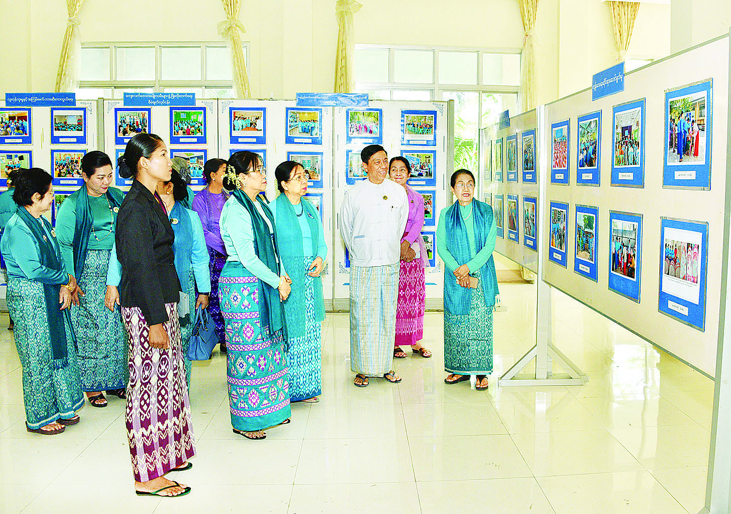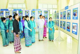 ထို့နောက် နိုင်ငံတော်စီမံအုပ်ချုပ်ရေးကောင်စီဥက္ကဋ္ဌ နိုင်ငံတော်ဝန်ကြီးချုပ်၏ ဇနီး မြန်မာနိုင်ငံ အမျိုးသမီးရေးရာအဖွဲ့ချုပ် ဂုဏ်ထူးဆောင်နာယက ဒေါ်ကြူကြူလှသည် အခမ်းအနားသို့ တက်ရောက်လာကြသူများနှင့်အတူ စုပေါင်းမှတ်တမ်းတင်ဓာတ်ပုံရိုက်ပြီး မြန်မာနိုင်ငံ အမျိုးသမီးရေးရာအဖွဲ့ချုပ်၏ လှုပ်ရှားဆောင်ရွက်မှုမှတ်တမ်းဓာတ်ပုံများကို လှည့်လည်ကြည့်ရှုကြသည်။