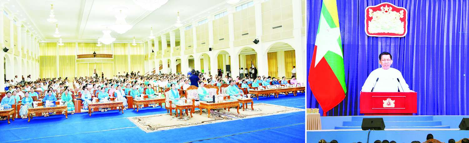၂၀၂၅ ခုနှစ် မြန်မာအမျိုးသမီးများနေ့အခမ်းအနားကို ယနေ့နံနက်ပိုင်းတွင် နေပြည်တော်ရှိ ဒက္ခိဏသီရိမြို့နယ် မြန်မာနိုင်ငံအမျိုးသမီးရေးရာအဖွဲ့ချုပ်ရုံး သီရိရတနာခန်းမ၌ ကျင်းပရာ နိုင်ငံတော်စီမံအုပ်ချုပ်ရေးကောင်စီဥက္ကဋ္ဌ နိုင်ငံတော်ဝန်ကြီးချုပ်၏ ဇနီး မြန်မာနိုင်ငံအမျိုးသမီးရေးရာ အဖွဲ့ချုပ် ဂုဏ်ထူးဆောင်နာယက ဒေါ်ကြူကြူလှ တက်ရောက်အားပေးသည်။