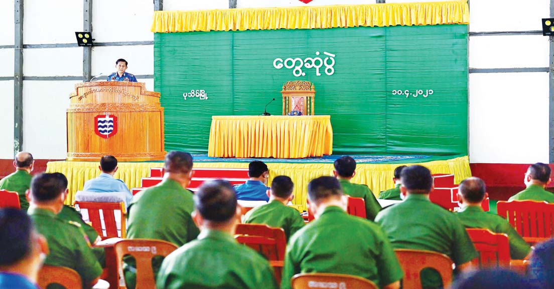 တပ်မတော်သည် တိုင်းပြည်ကာကွယ်ရေးအတွက် အဓိကဆောင်ရွက်ရမည်ဖြစ်ပြီး တပ်မတော်သားများအနေဖြင့် စစ်သားပီသစွာဆောင်ရွက်ရန်လိုကြောင်း၊ နိုင်ငံရေး အရတာဝန်ယူချိန်တွင် ဒီမိုကရေစီကျင့်စဉ်နှင့်အညီ ဆောင်ရွက်နိုင်ရန်လိုကြောင်း၊ အစဉ်အလာကောင်းများရှိနေသည့် မိမိတို့တပ်မတော်ကို ယခုထက်ပိုမိုတိုးတက် အောင် ဆောင်ရွက်ကြရန်လိုကြောင်း၊ တပ်မတော်သားတစ်ဦးချင်း၏ အရည်အသွေး၊ တပ်ဖွဲ့တစ်ခုချင်း၏အရည်အသွေး၊ ဌာနချုပ်များအလိုက်ရှိသည့် စုစည်းသည့် အင်အားနှင့် အရည်အသွေးများကို ထိန်းသိမ်းဆောင်ရွက်ကြရန်လိုကြောင်း၊ တပ်မတော်သည်စုစည်းသည့်အင်အား ခိုင်ခိုင်မာမာရှိခြင်းကြောင့် မိမိတို့အနေဖြင့် တိုင်းပြည်ကို ထိန်းသိမ်းဆောင်ရွက်နိုင်ခြင်း ပင်ဖြစ်ကြောင်း၊ မိမိတို့တပ်မတော်သည် နိုင်ငံ့အရေးတာဝန်၊ နိုင်ငံရေးတာဝန်ကို ယူထားရခြင်းဖြစ်သဖြင့် မိမိတို့အနေဖြင့် လုပ်ငန်းများအား တာဝန်ကျေစွာဆောင်ရွက် သွားရန်လိုကြောင်းဖြင့် မှာကြားခဲ့သည်။