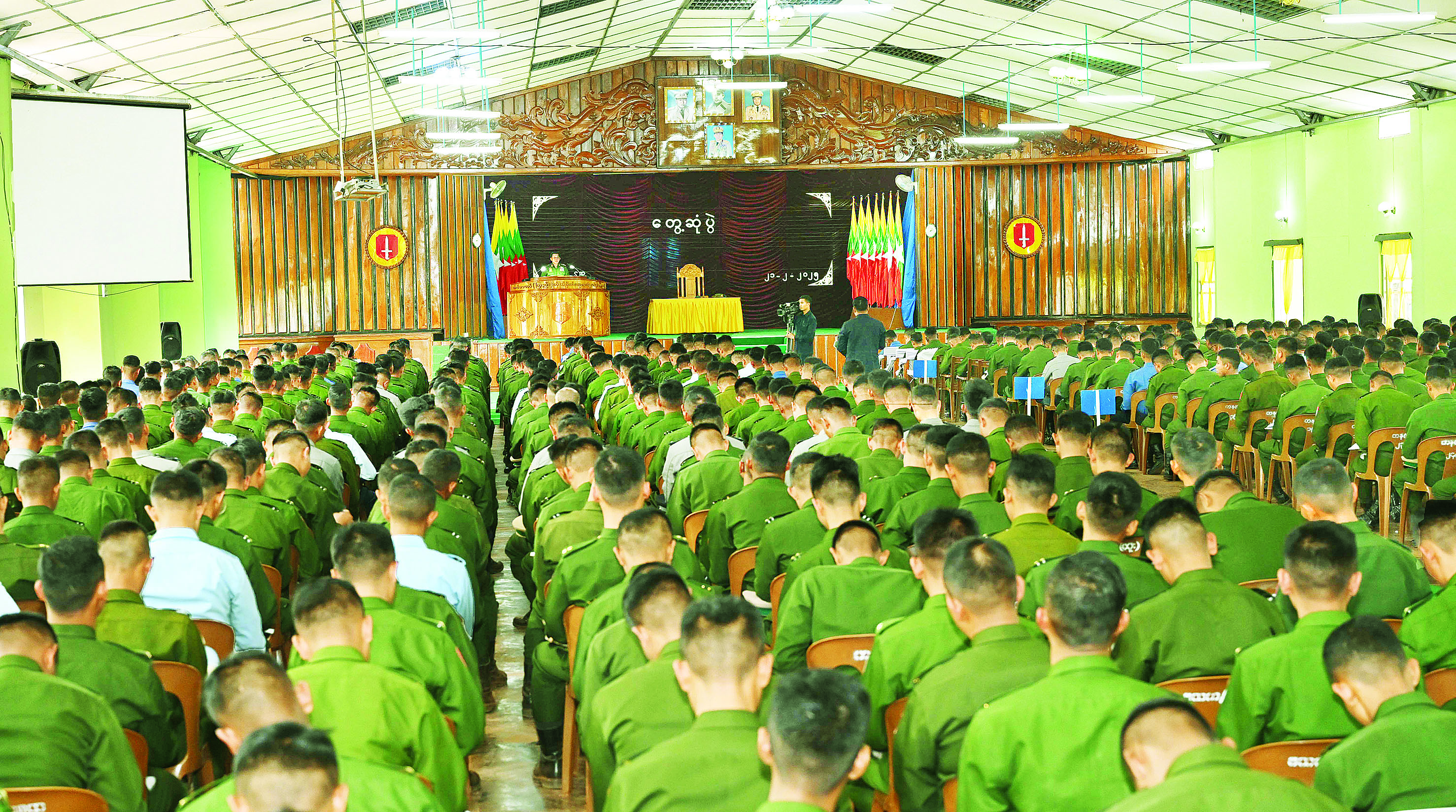 တပ်မတော်ပိုင်းနှင့်ပတ်သက်၍ တပ်မတော် သားများသည် မည်သူတစ်ဦးတစ်ယောက်၏ တိုက်တွန်းချက်မျှမပါရှိဘဲ နိုင်ငံတော်ကာကွယ်ရေး နှင့် လုံခြုံရေးတာဝန်များကို ထမ်းဆောင်မည်ဟူသည့် မွန်မြတ်သည့်စိတ်ဓာတ်များဖြင့် တပ်မတော်အတွင်း သို့ ဝင်ရောက်ခဲ့ကြသူများပင်ဖြစ်ကြောင်း၊ ထိုကဲ့သို့ သော အခြေခံစိတ်ဓာတ်ကောင်းများကို ဆက်လက် ထိန်းသိမ်းပြီး နိုင်ငံတော်နှင့် တပ်မတော်မှပေးအပ် လာသောတာဝန်များကို ဂုဏ်ယူစွာဖြင့် ဆက်လက် ထမ်းဆောင်သွားကြရမည်ဖြစ်ကြောင်း၊ တာဝန်များကို ထမ်းဆောင်ရာ၌ မိမိတို့အားပေးအပ်လာသည့် တာဝန်များကို စွမ်းရည်သတ္တိအပြည့်ဖြင့် အောင်မြင်အောင်ထမ်းဆောင်ကြရန်လိုပြီး စိတ်ပိုင်း၊ ရုပ်ပိုင်းဆိုင်ရာအရ ကျန်းမာကြံ့ခိုင်မှု ရှိရန်၊ ဇွဲ၊ လုံ့လ၊ ဝီရိယအပြည့်ဖြင့် တာဝန်ထမ်းဆောင်ကြရန် လိုကြောင်း၊ ယခုကဲ့သို့ သင်တန်းများမှ သင်ကြား ပို့ချပေးသည့် စစ်နည်းဗျူဟာများ၊ စစ်အခြေခံသဘောတရားများကို အမှန်တကယ်သိရှိနားလည် တတ်ကျွမ်းမှုရှိ အောင် သင်ယူလေ့လာသွားကြရန်လိုပြီး လက်တွေ့စစ်မြေပြင်တွင် အကျိုးရှိရှိအသုံး ချနိုင်ရမည်ဖြစ်ကြောင်း၊ စိတ်ဓာတ်ကြံ့ခိုင်မှုရှိပါက လုပ်ငန်းများကို ရာနှုန်းပြည့်အောင်မြင်အောင် ထမ်းဆောင်နိုင်မည်ဖြစ်ပြီး တစ်ဦးချင်း စိတ်ဓာတ်ခိုင်မာမှုရှိစေရေး၊ ကြံ့ခိုင်မှုရှိစေရေး ယုံကြည်ချက်၊ ခံယူချက်ကောင်းစွာဖြင့် နိုင်ငံတော်ကာကွယ်ရေး တာဝန်များကို ထမ်းဆောင်သွားကြရန်လိုကြောင်း၊ သင်တန်းသားအရာရှိများအနေဖြင့် တစ်ဦးချင်းစီ အလိုက် ရည်မှန်းချက်များကိုယ်စီရှိကြမည်ဖြစ်ပြီး မိမိတို့၏ရည်မှန်းချက်များ အောင်မြင်မှုရှိစေရေး၊ မပျောက်ပျက်စေရေး မလျှော့သော ဇွဲ၊ လုံ့လများဖြင့် ဆက်လက်ကြိုးပမ်းဆောင်ရွက်သွားကြရန် လိုကြောင်း၊ ယနေ့ခေတ်သည် နည်းပညာခေတ်ဖြစ်သဖြင့် ပြောင်းလဲတိုးတက်နေသည့် နည်းပညာရပ် များ၊ စစ်နည်းဗျူဟာများကို မျက်ခြည်မပြတ် သိရှိနေစေရေး စဉ်ဆက်မပြတ်သည့် လေ့လာဆည်းပူးမှုများကို ဆောင်ရွက်သွားကြရမည်ဖြစ်ကြောင်း၊ ခိုင်မာ တည်ကြည်သည့်စိတ်ဓာတ်များဖြင့် မိမိကိုယ်ကိုထိန်းသိမ်း၍ ရည်မှန်းချက်များ အောင်မြင်မှုရရှိအောင် ဆက်လက် ဆောင်ရွက်သွားကြရန်လိုကြောင်း။